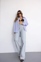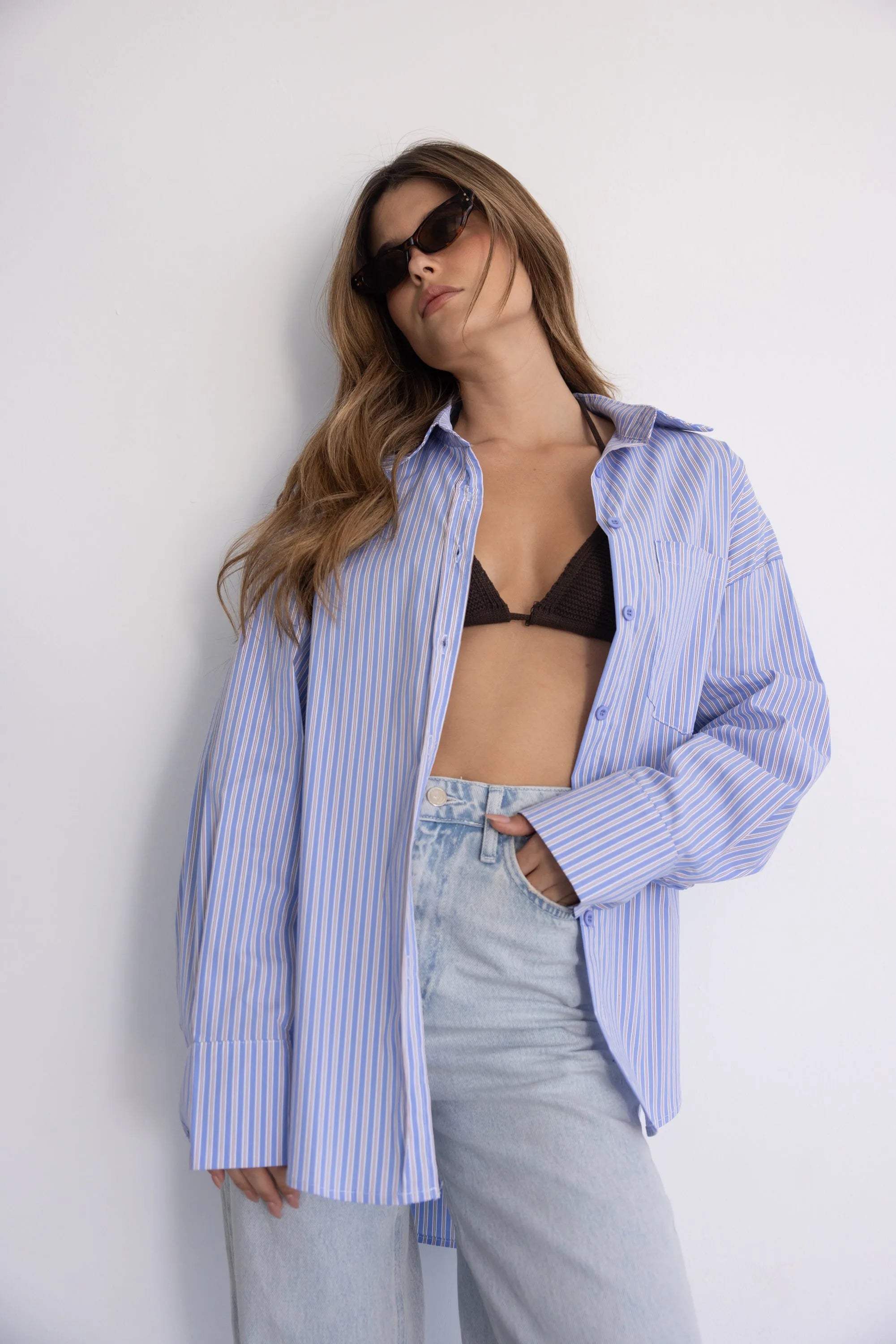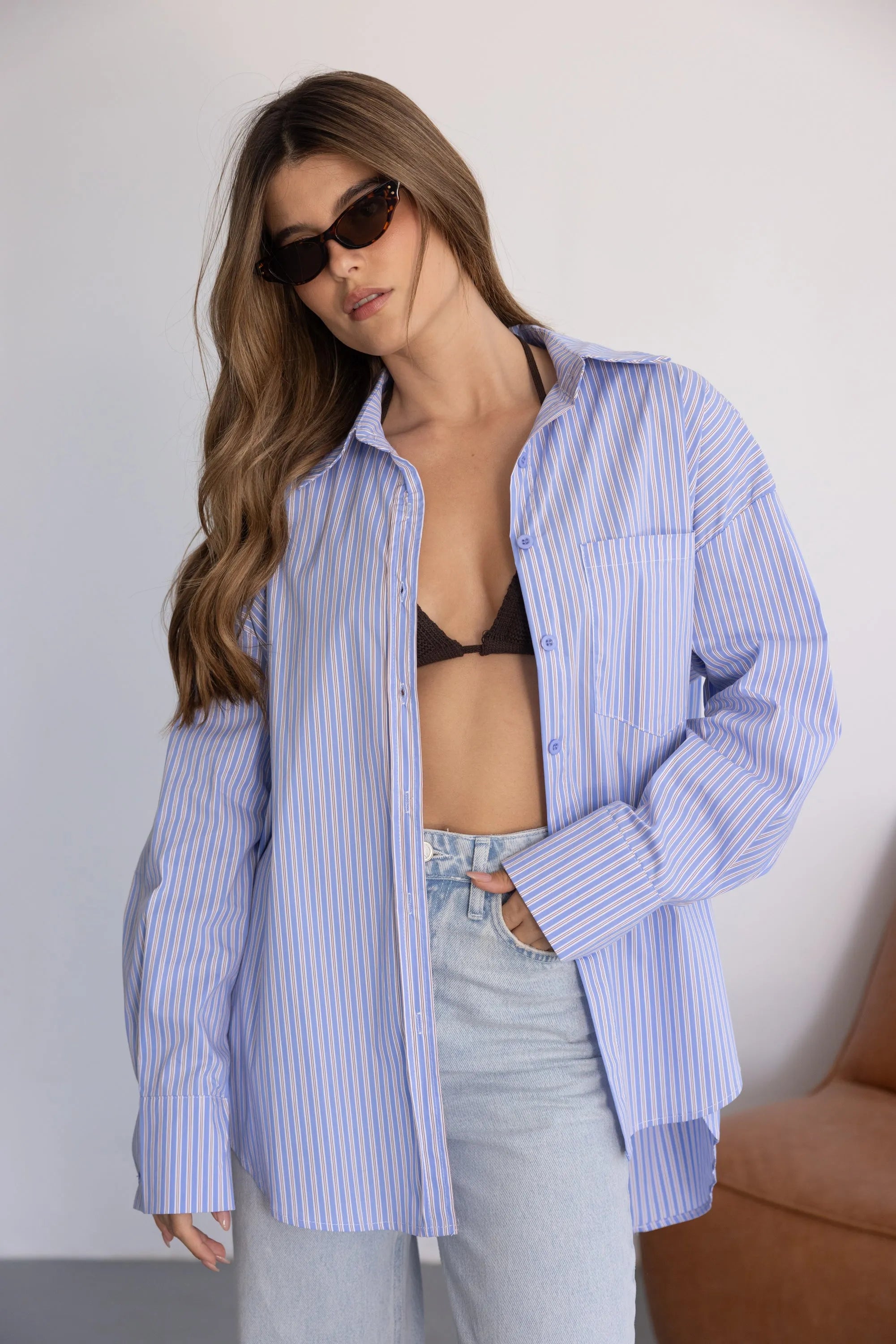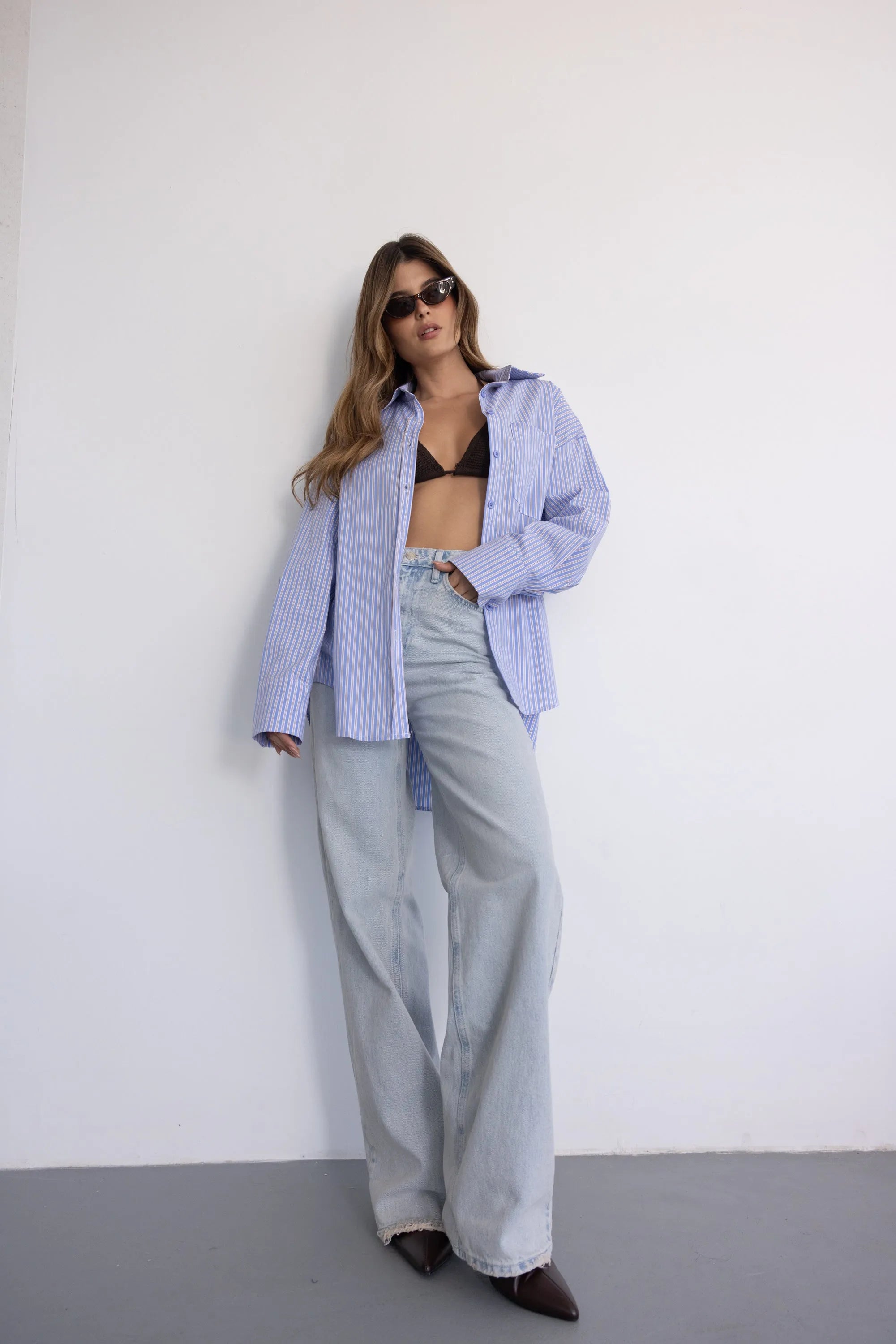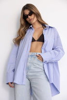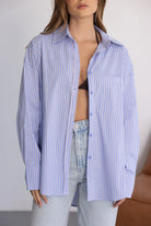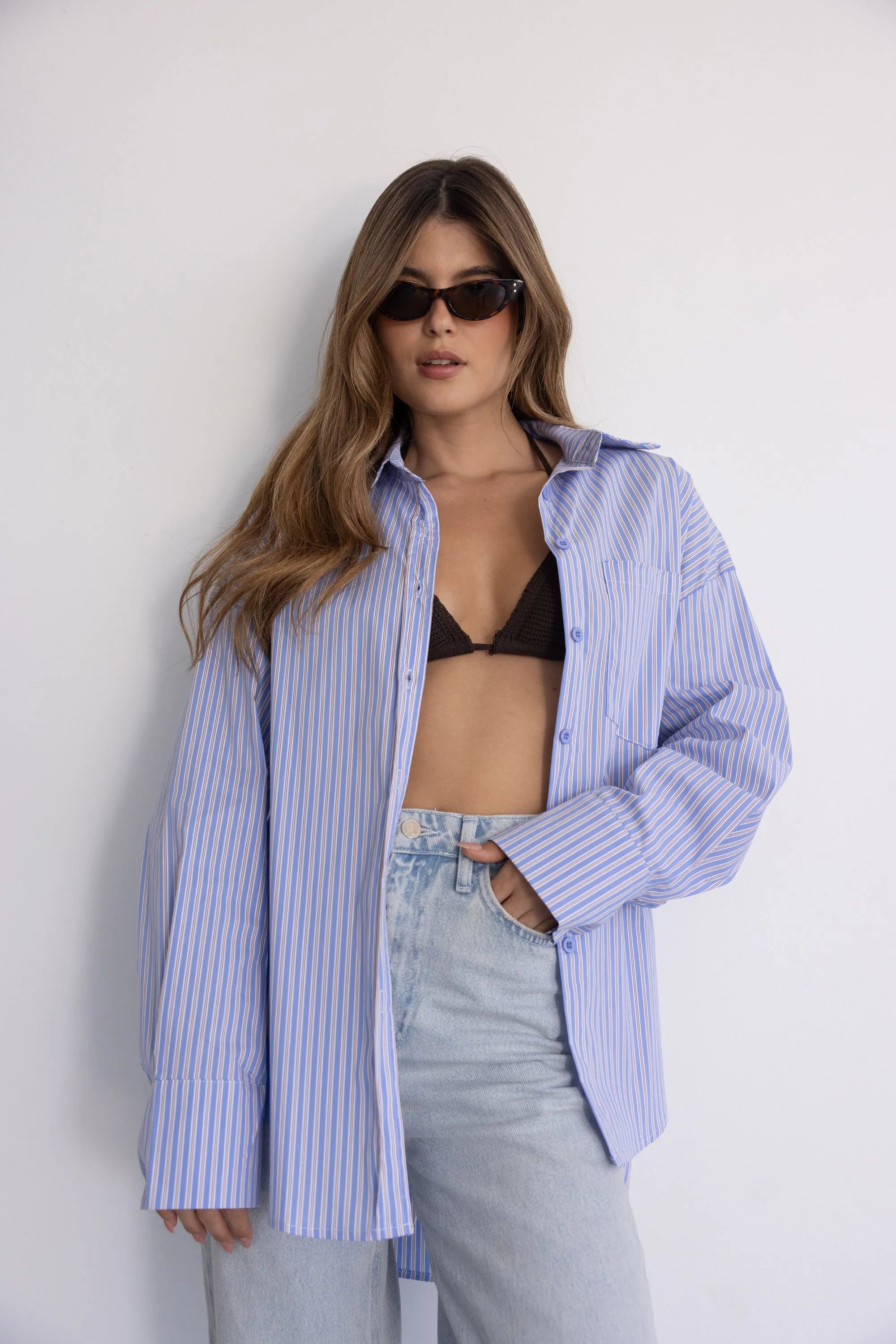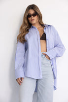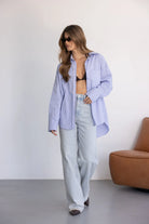 חולצה מכופתרת קלאסית וטרנדית כאחד, בגזרה משוחררת ומחמיאה לגוף. בשילוב הדפס פסים לאורך החולצה ובד נעים ואיכותי.