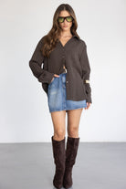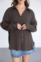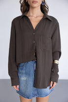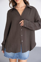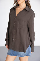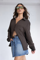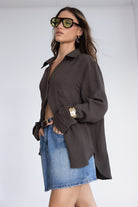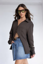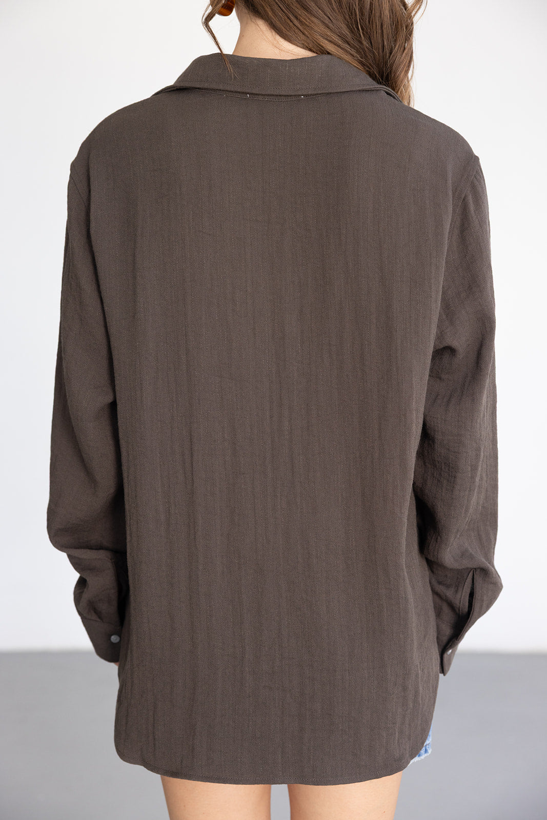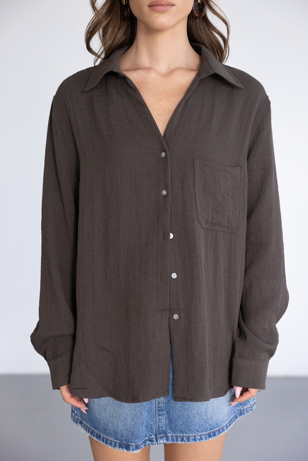 חולצת פשתן מכופתרת ארוכה בגזרה משוחררת, עשויה מבד נעים ונושם. בעלת שרוולים ארוכים, כיס בחזית וסגירת כפתורים בחלק הקדמי. מפתח וי עדין וצווארון קלאסי