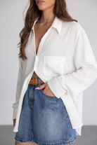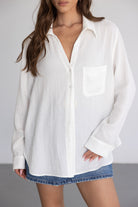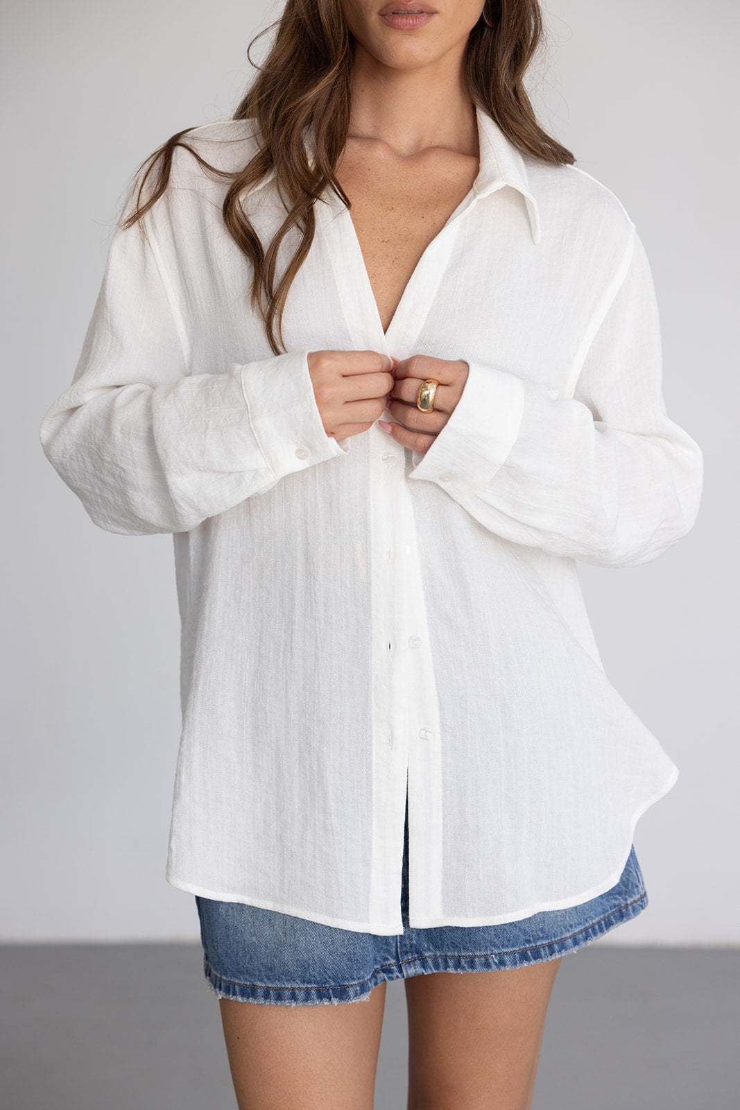 חולצת פשתן מכופתרת ארוכה בגזרה משוחררת, עשויה מבד נעים ונושם. בעלת שרוולים ארוכים, כיס בחזית וסגירת כפתורים בחלק הקדמי. מפתח וי עדין וצווארון קלאסי