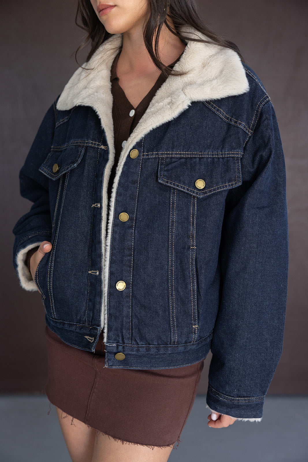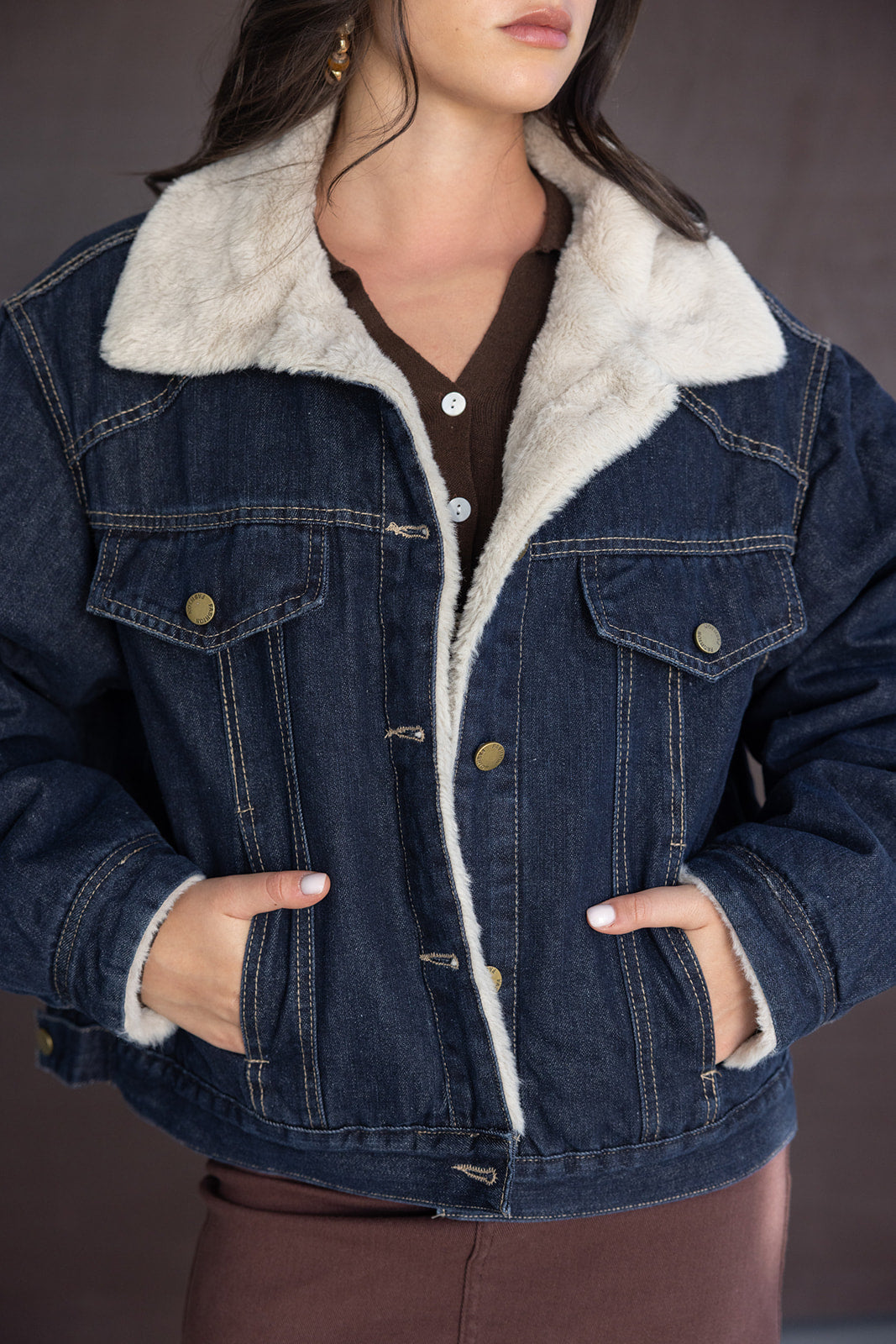 ג'קט ג'ינס במראה קלאסי, בשילוב ארבעה כיסים, כפתורים וצווארון קלאסי. לג'קט ביטנה עשויה דמוי פרווה מחממת לעונה הקרובה המעניקה לג'קט טוויסט טרנדי.