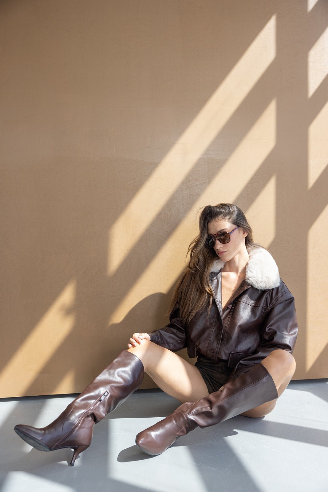 מעיל עשוי דמוי עור במראה טרנדי החם של העונה, עם בטנה עשויה דמוי פרווה נוחה ומחממת. בשילוש שני כיסי דמה קדמיים, סגירת כפתורים וצווארון דמוי פרווה נשלף.