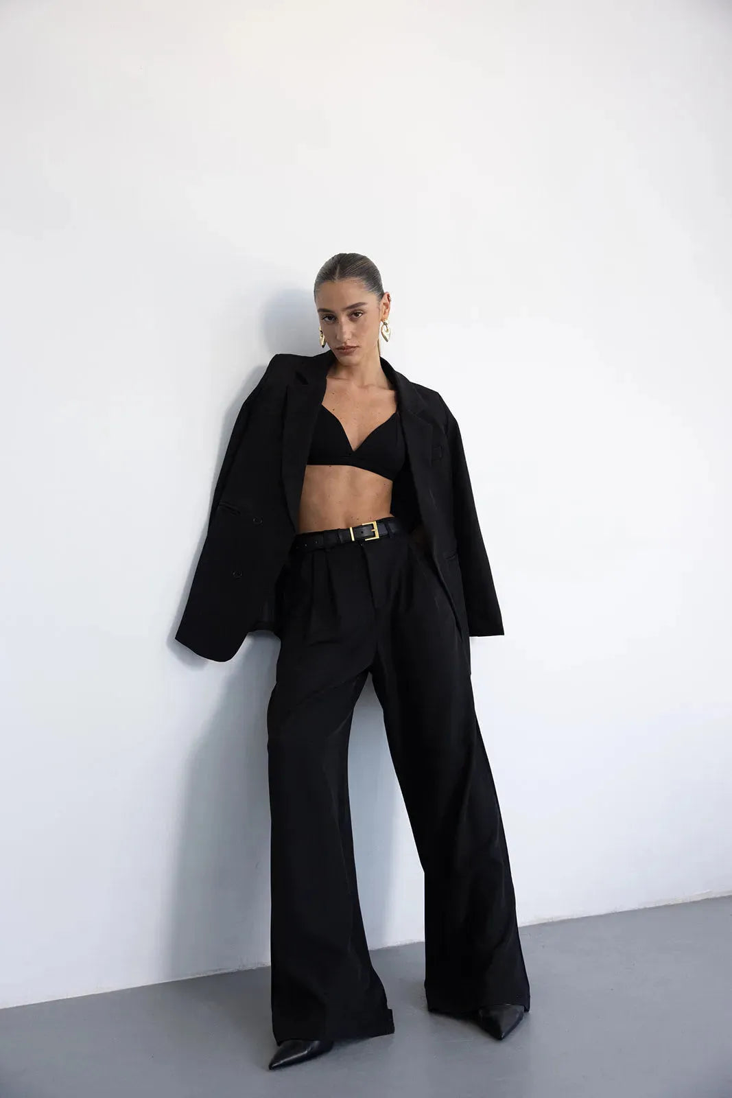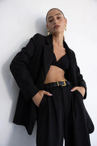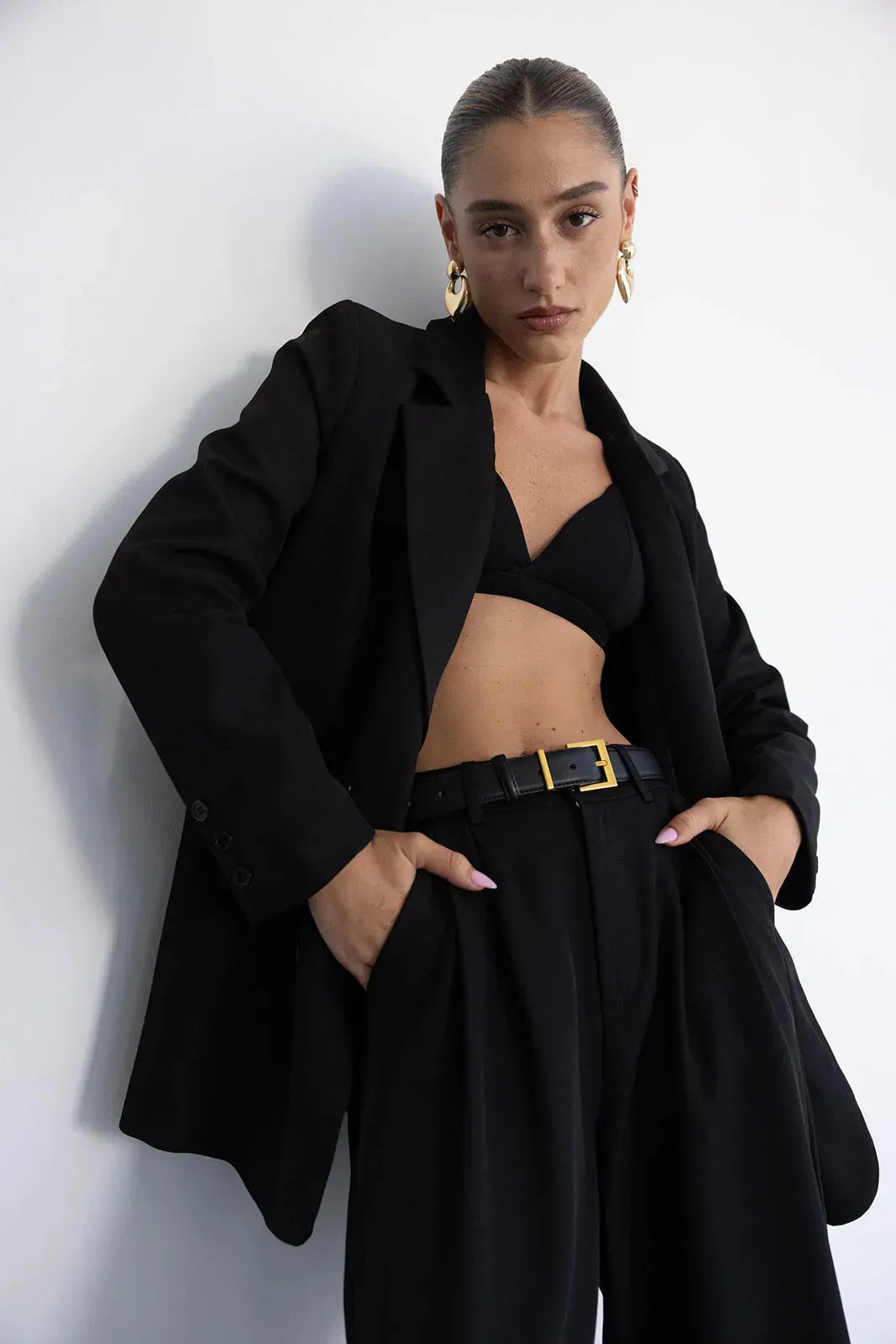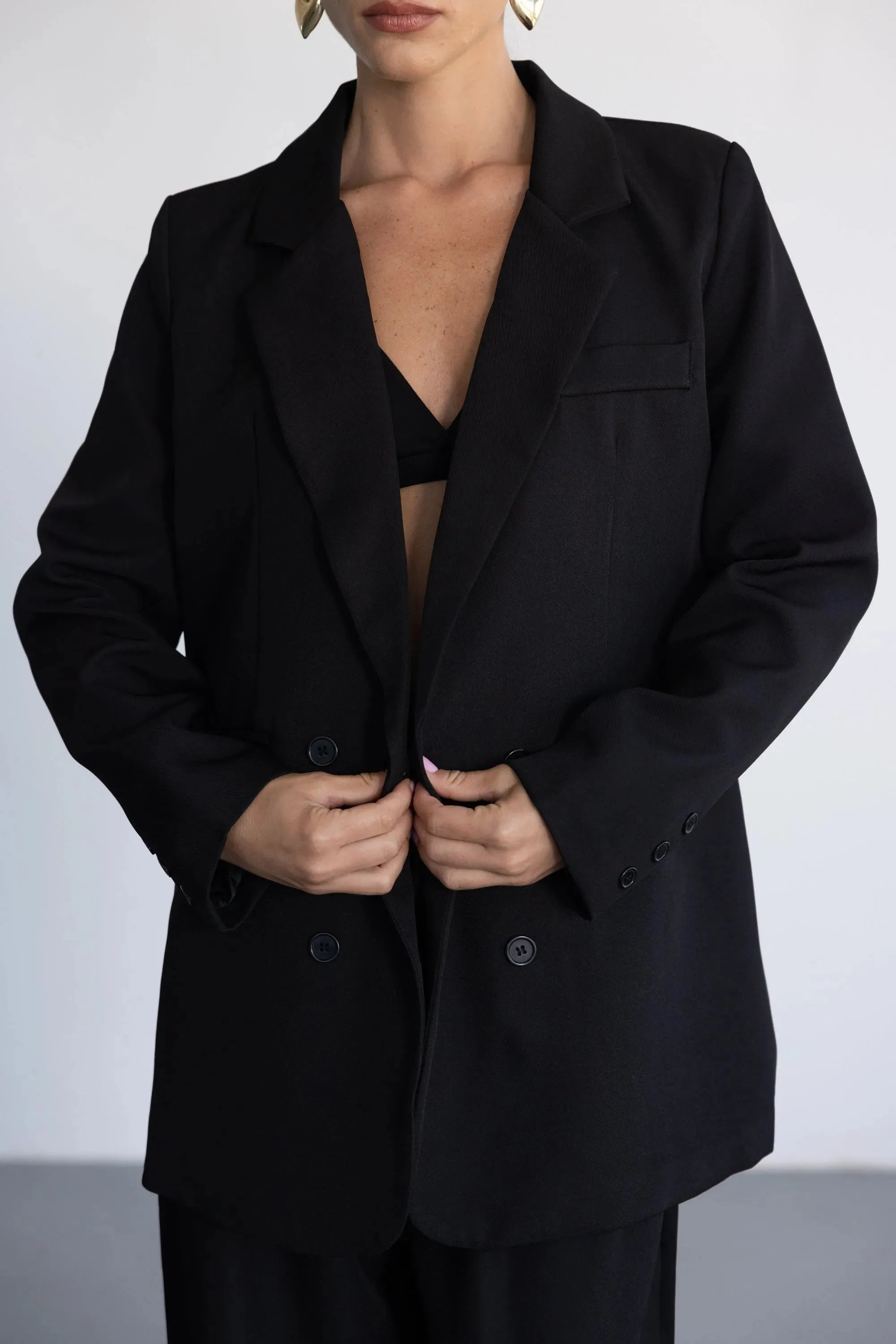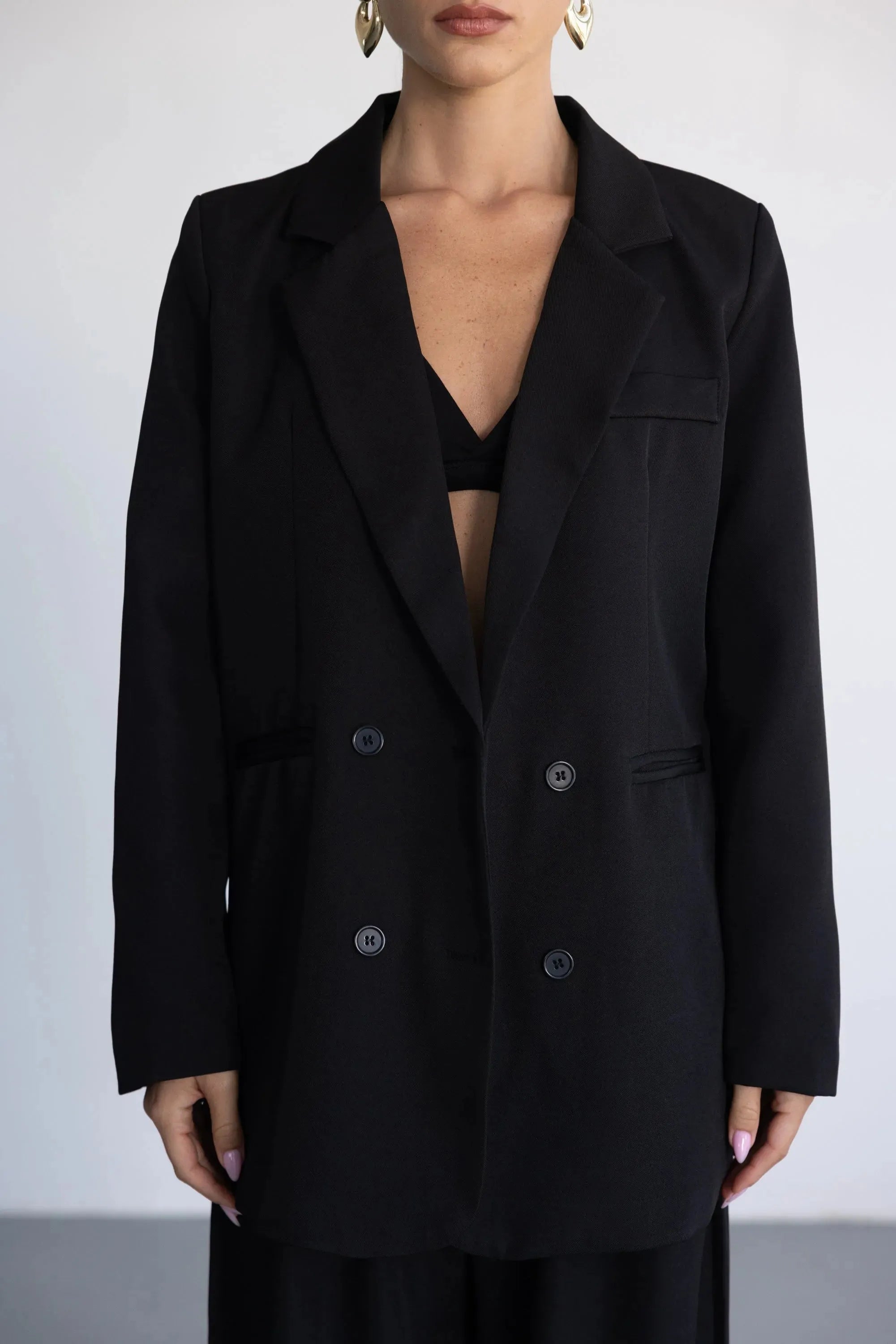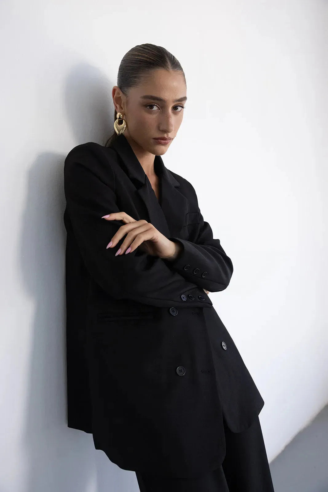ג'קט מחויט קלאסי בגזרה מדויקת, בשילוב כפתורים ושני כיסי דמה.