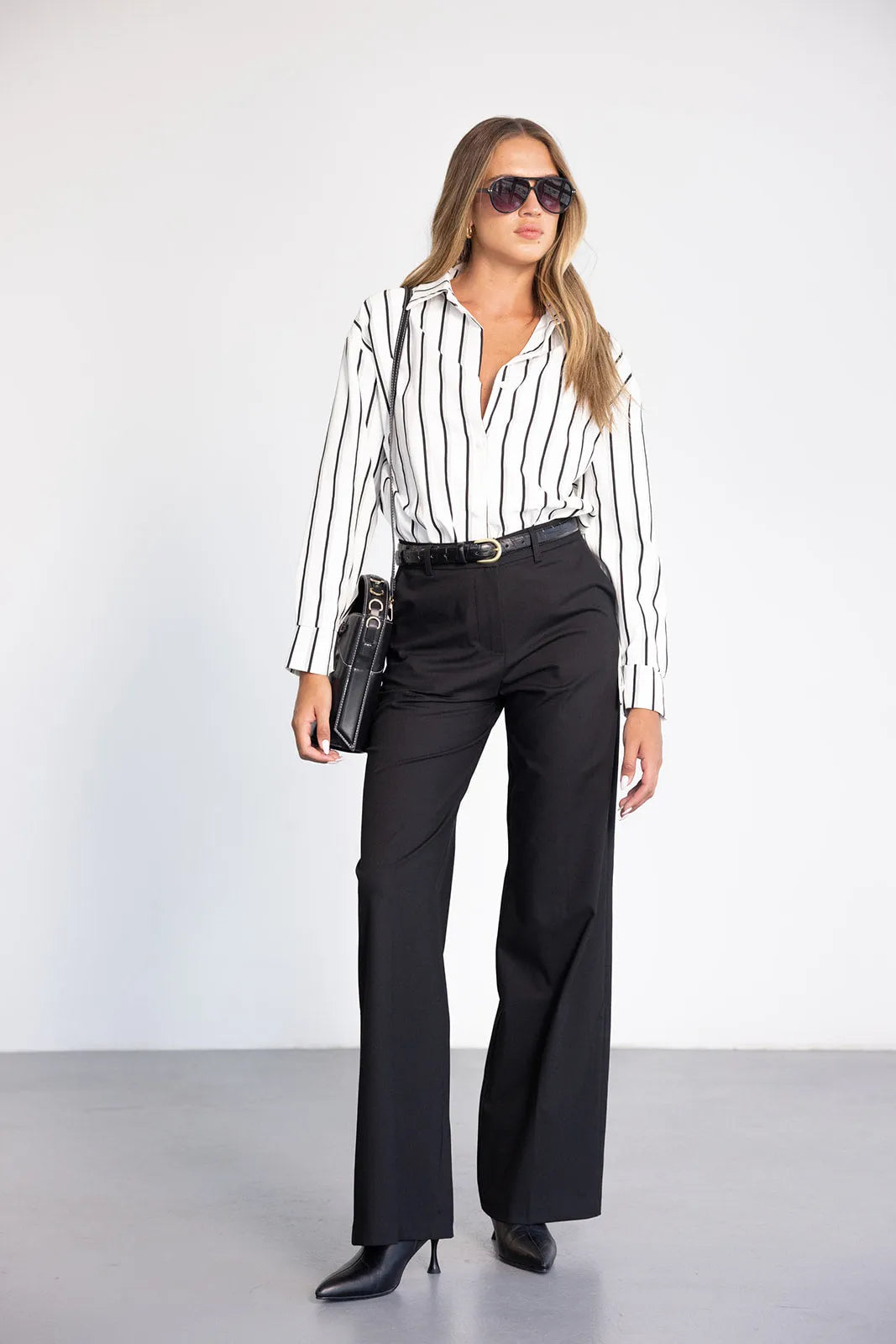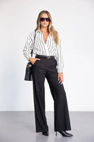 מכנס אלגנט קלאסי בגזרה ישרה ומחמיאה, בשילוב זוג כיסי דמה אחוריים וזוג כיסים קדמיים.