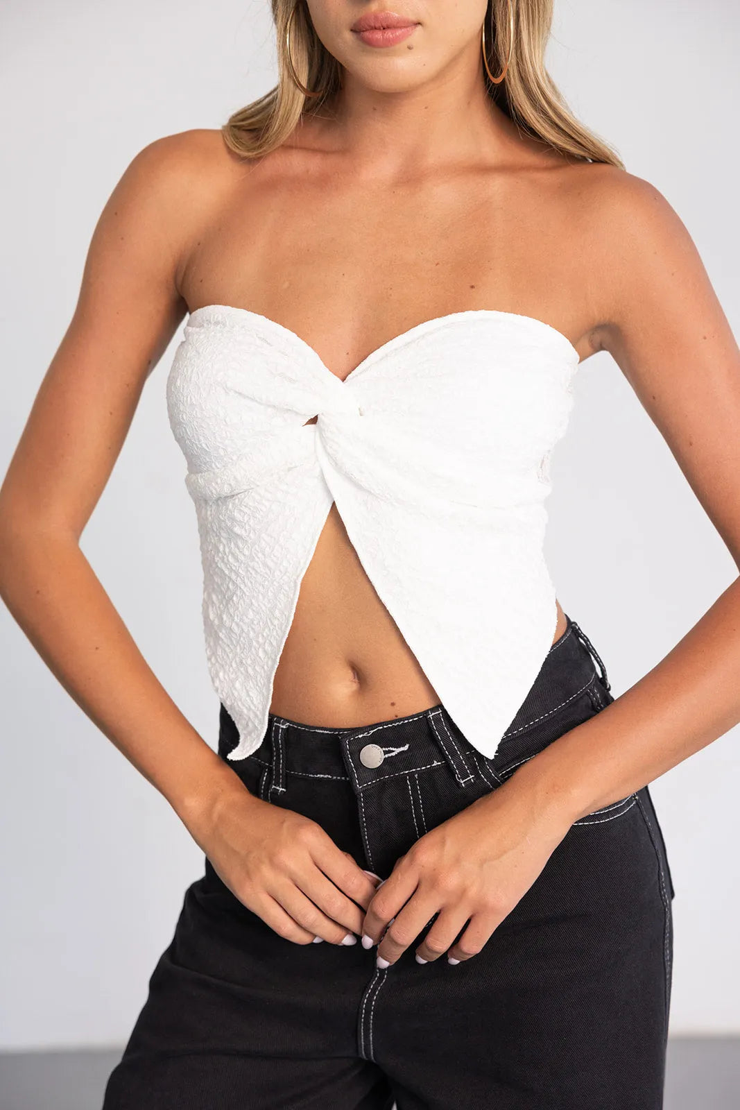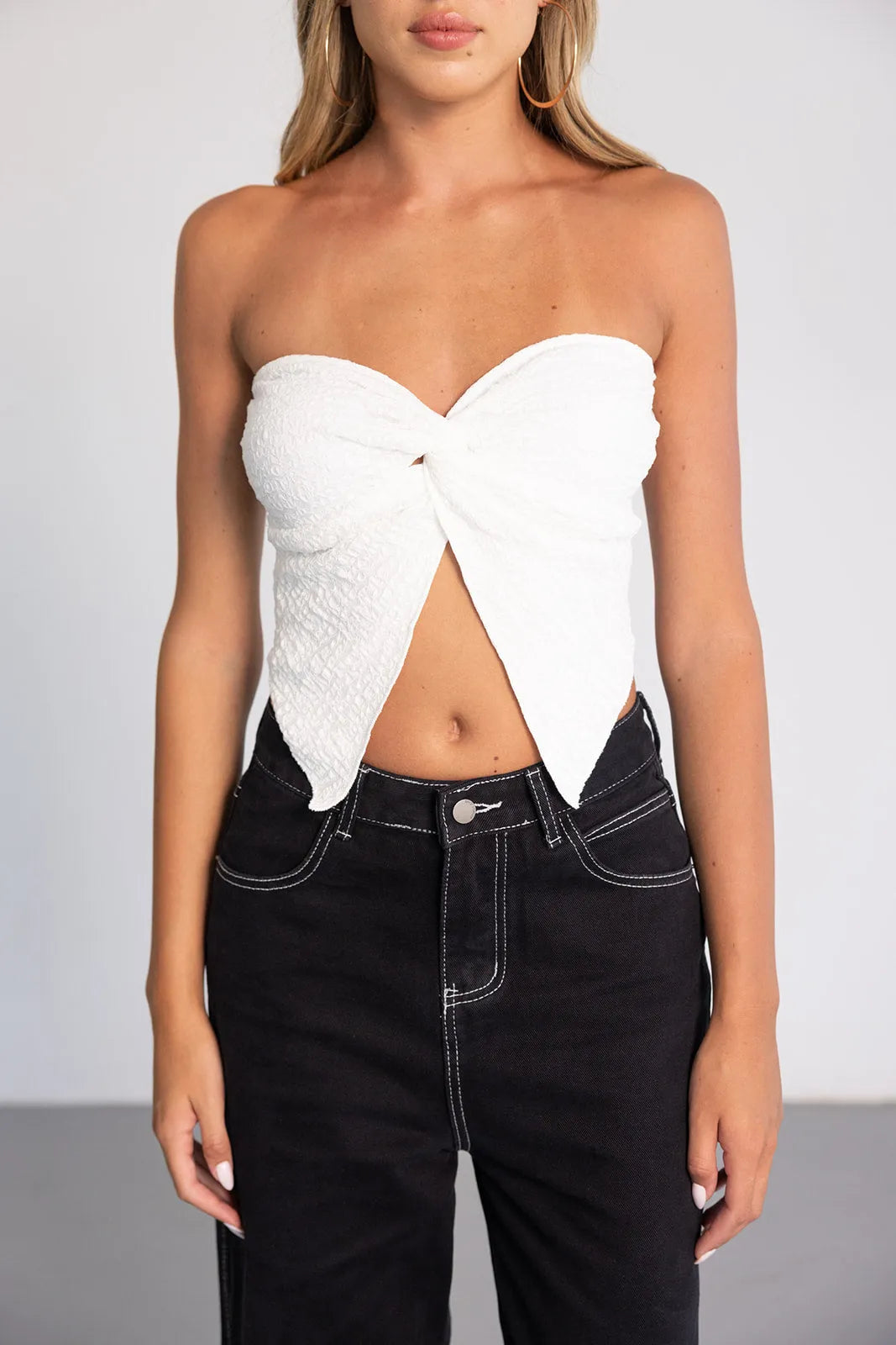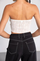 טופ סטרפלס עשוי תחרה שקפקפה מעט למראה טרנדי, בשילוב קאפים לנוחות מקסימאלית.