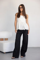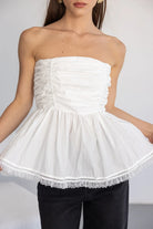 חולצת סטרפלס חגיגית ביותר בשילוב כיווצים וסיומת תחרה למראה טרנדי ומחמיא.