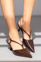 נעלי עקב במראה מבריק, אלגנטיות ומחמיאות. בשילוב רצועה מתכווננת ועקב קיטן לנוחות מקסימאלית.
