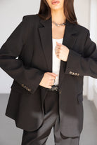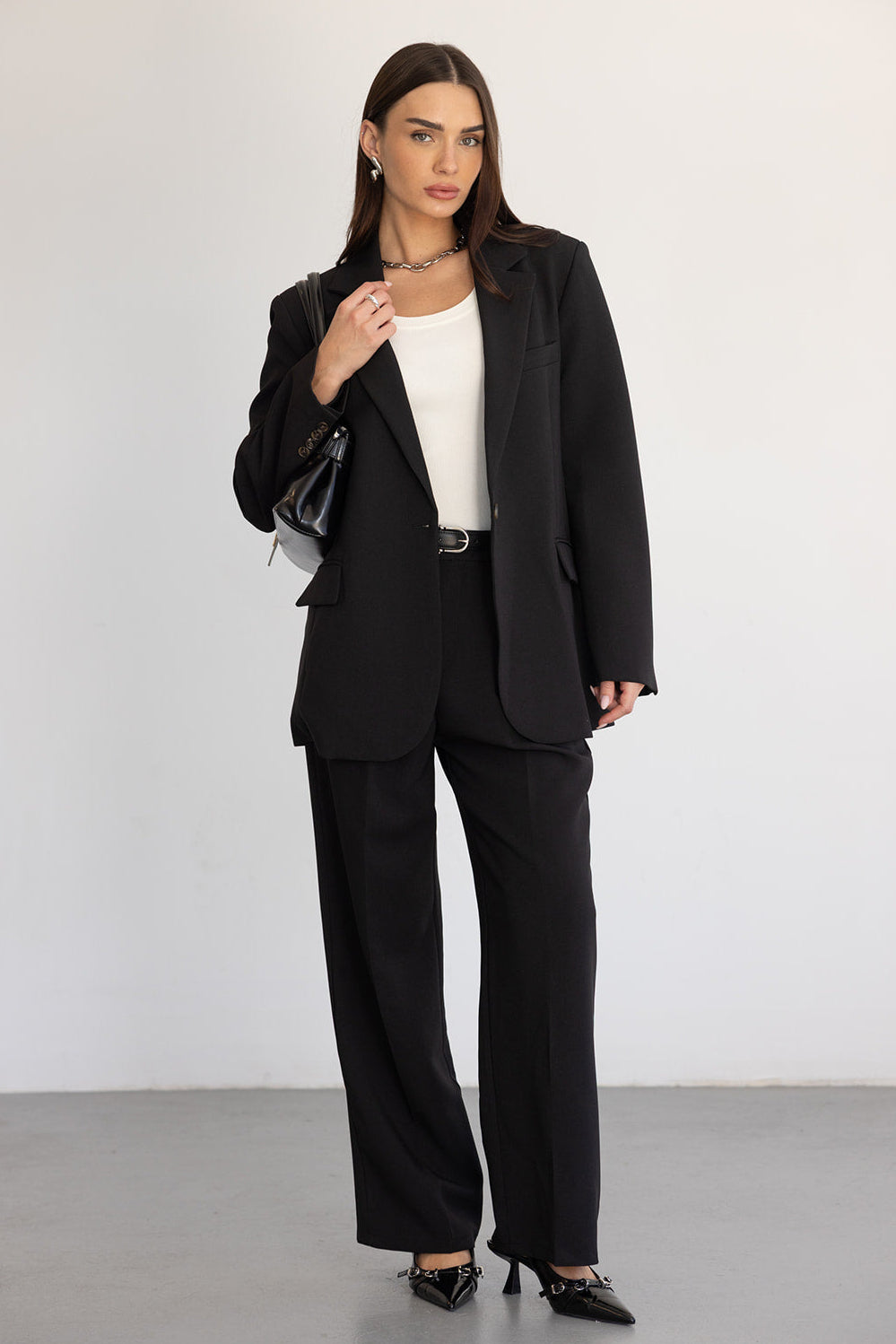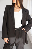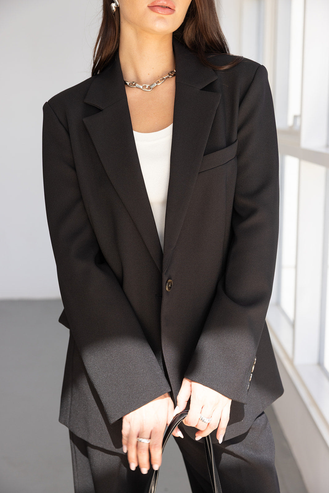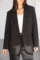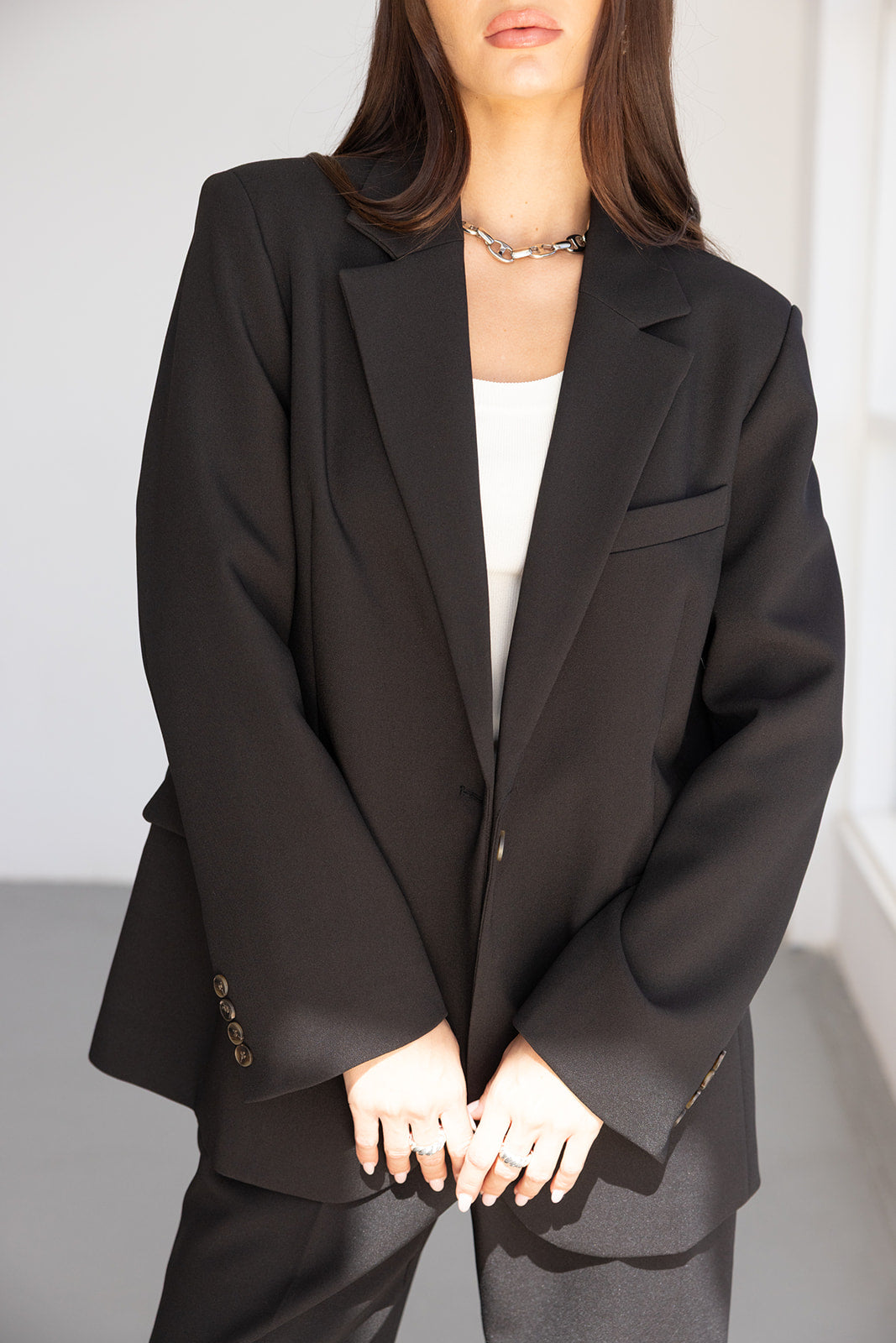 ג'קט אלגנטי בגזרה ישרה ומחמיאה, בשילוב שלושה כיסי דמה וסגירת כפתור.