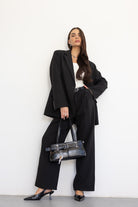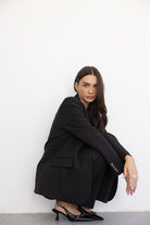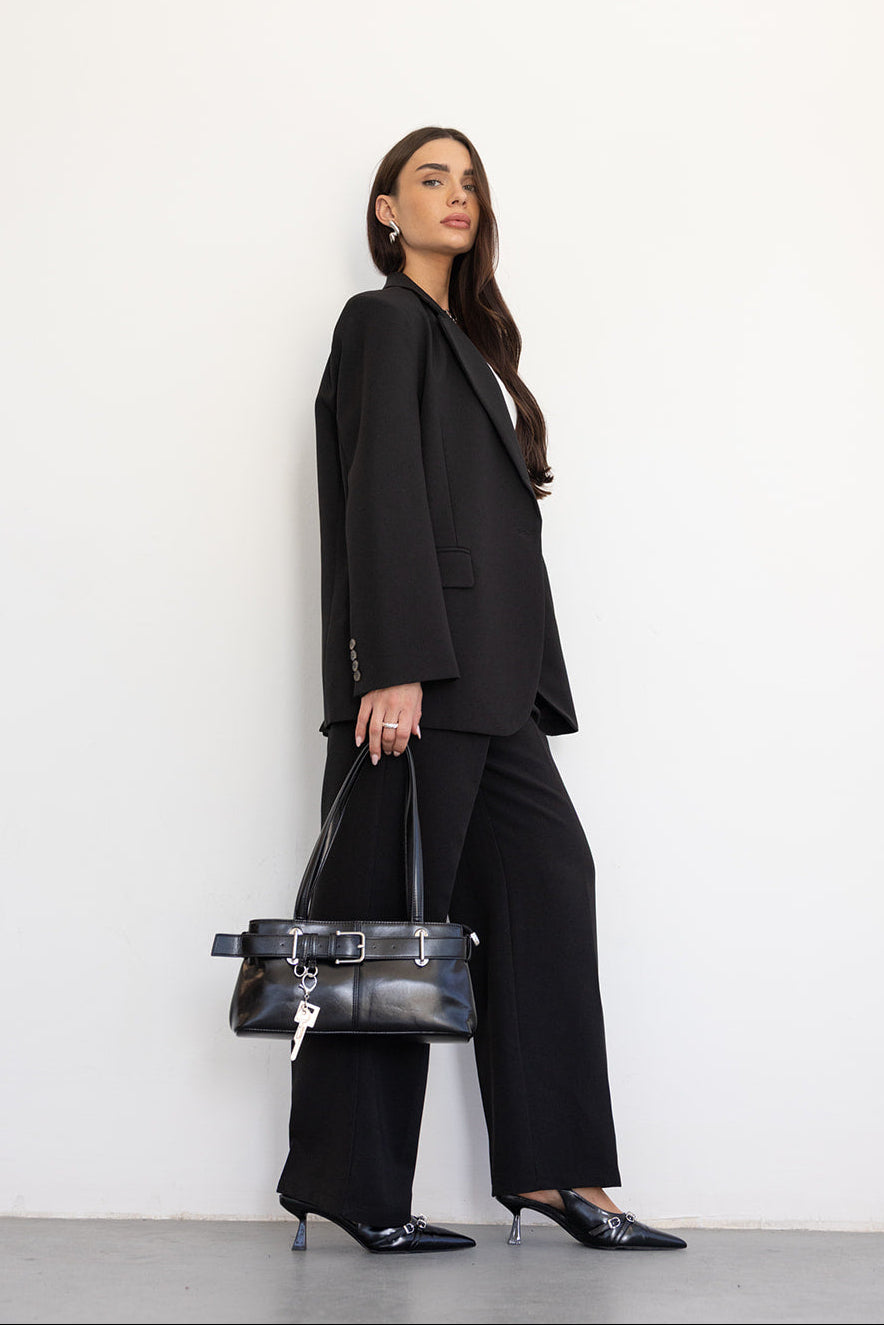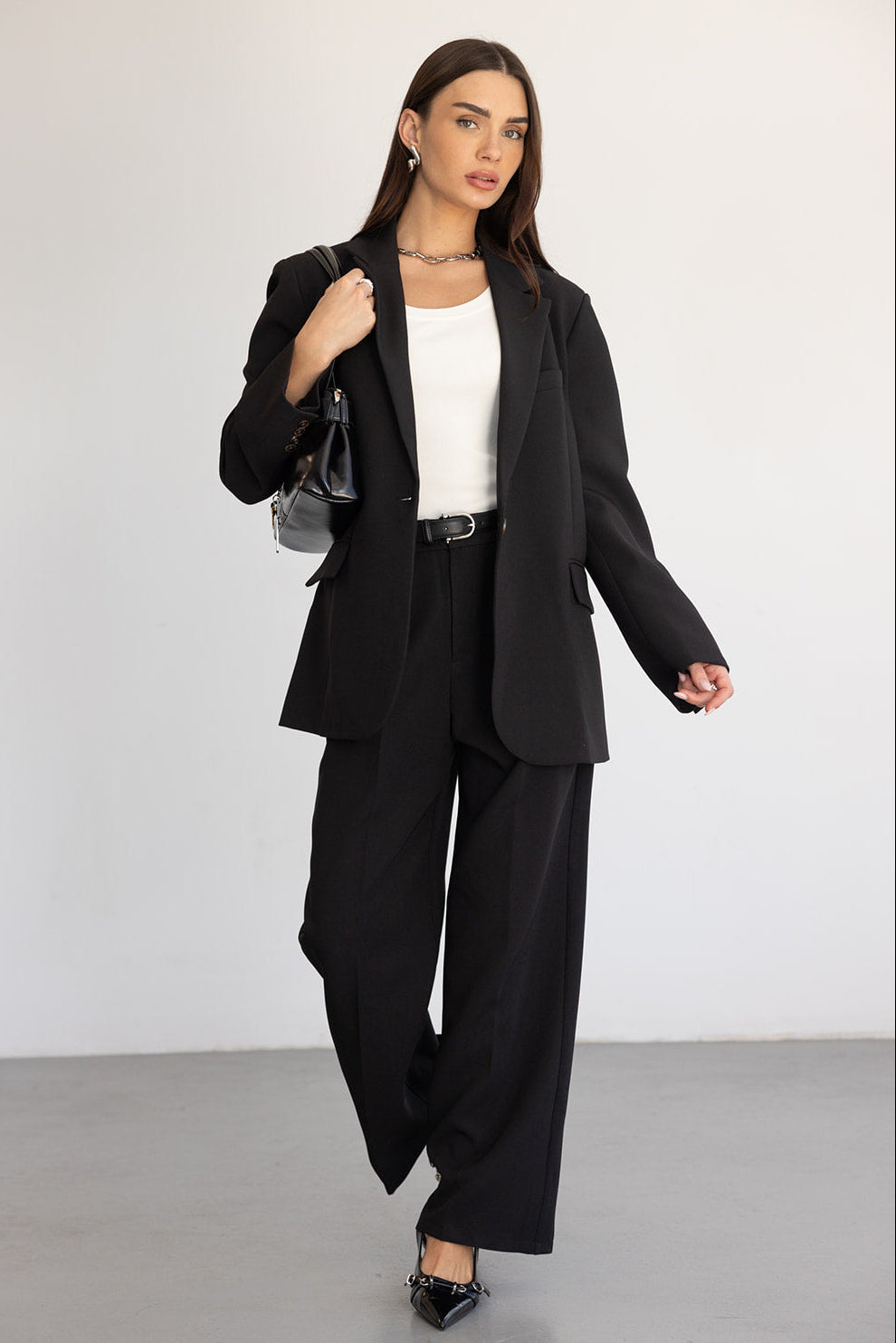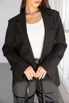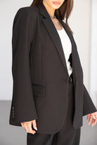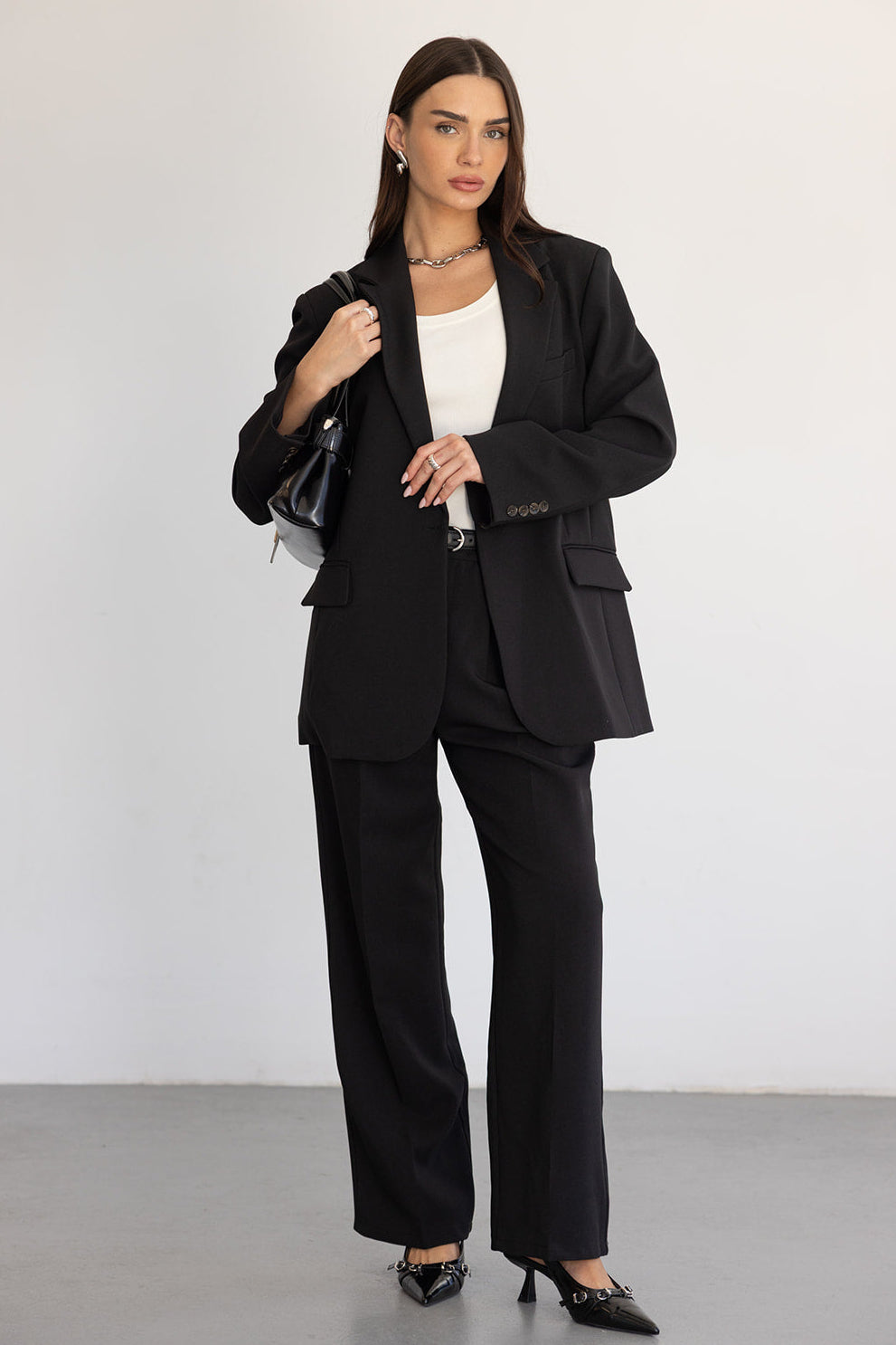 ג'קט אלגנטי בגזרה ישרה ומחמיאה, בשילוב שלושה כיסי דמה וסגירת כפתור.