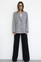 ג'קט מחויט קלאסי בגזרה מדויקת, בשילוב הדפס משובץ טרנדי, כפתורים ושלושה כיסי דמה.