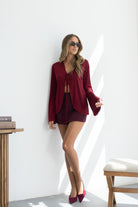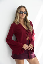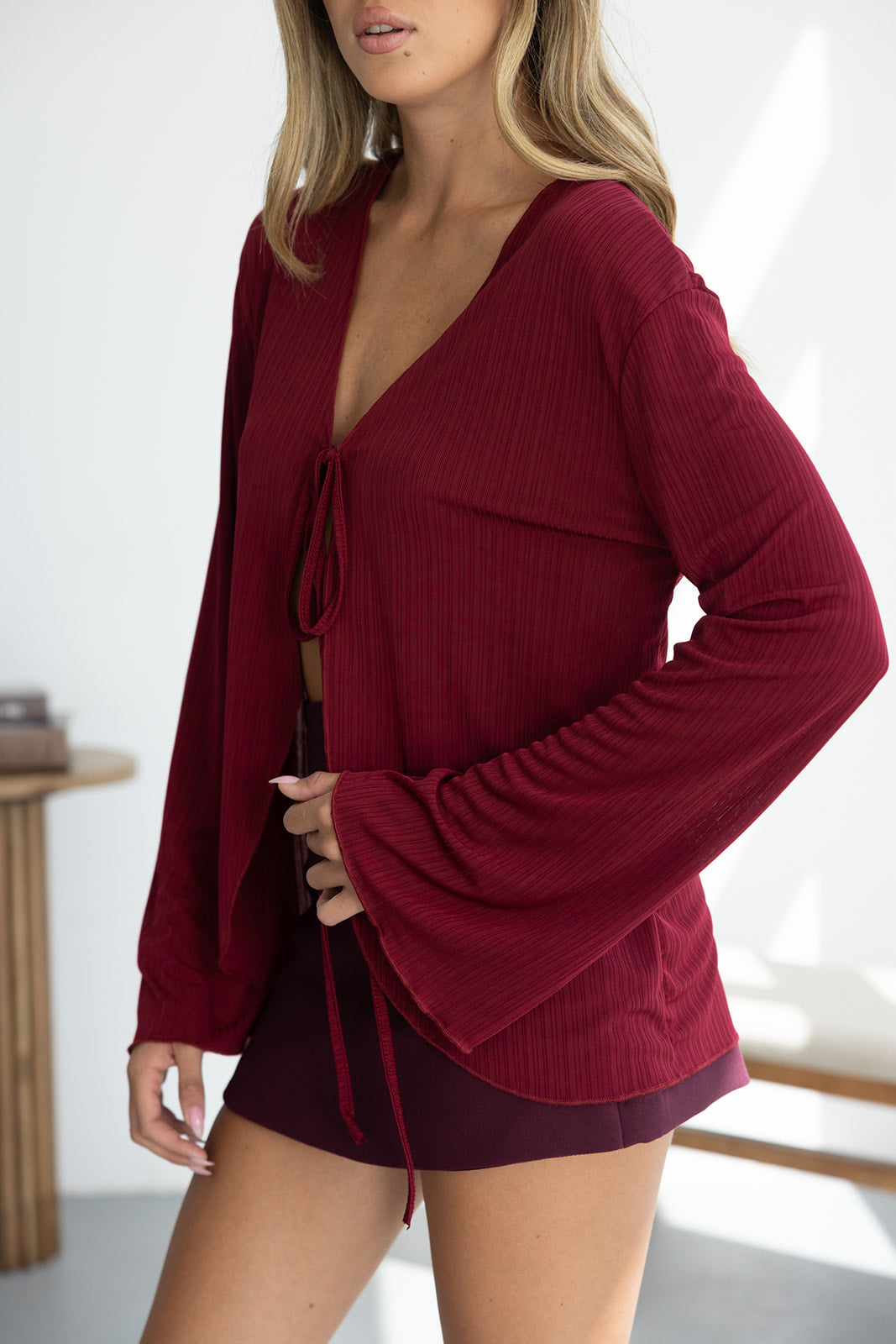 עליונית דקיקה במראה חגיגי, בשילוב שרוולים ארוכים וקשירה.
