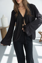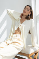 עליונית דקיקה במראה חגיגי, בשילוב שרוולים ארוכים וקשירה.