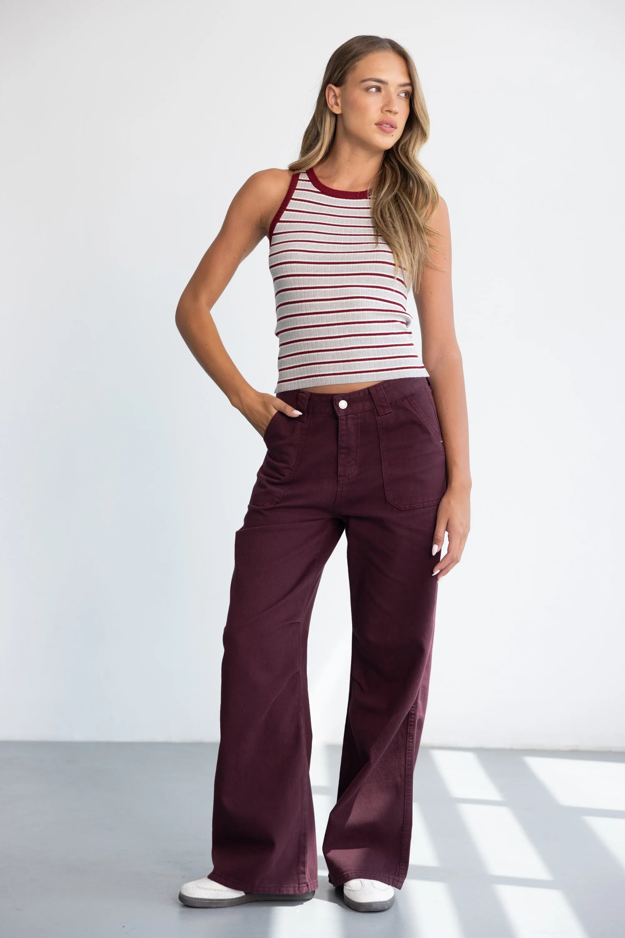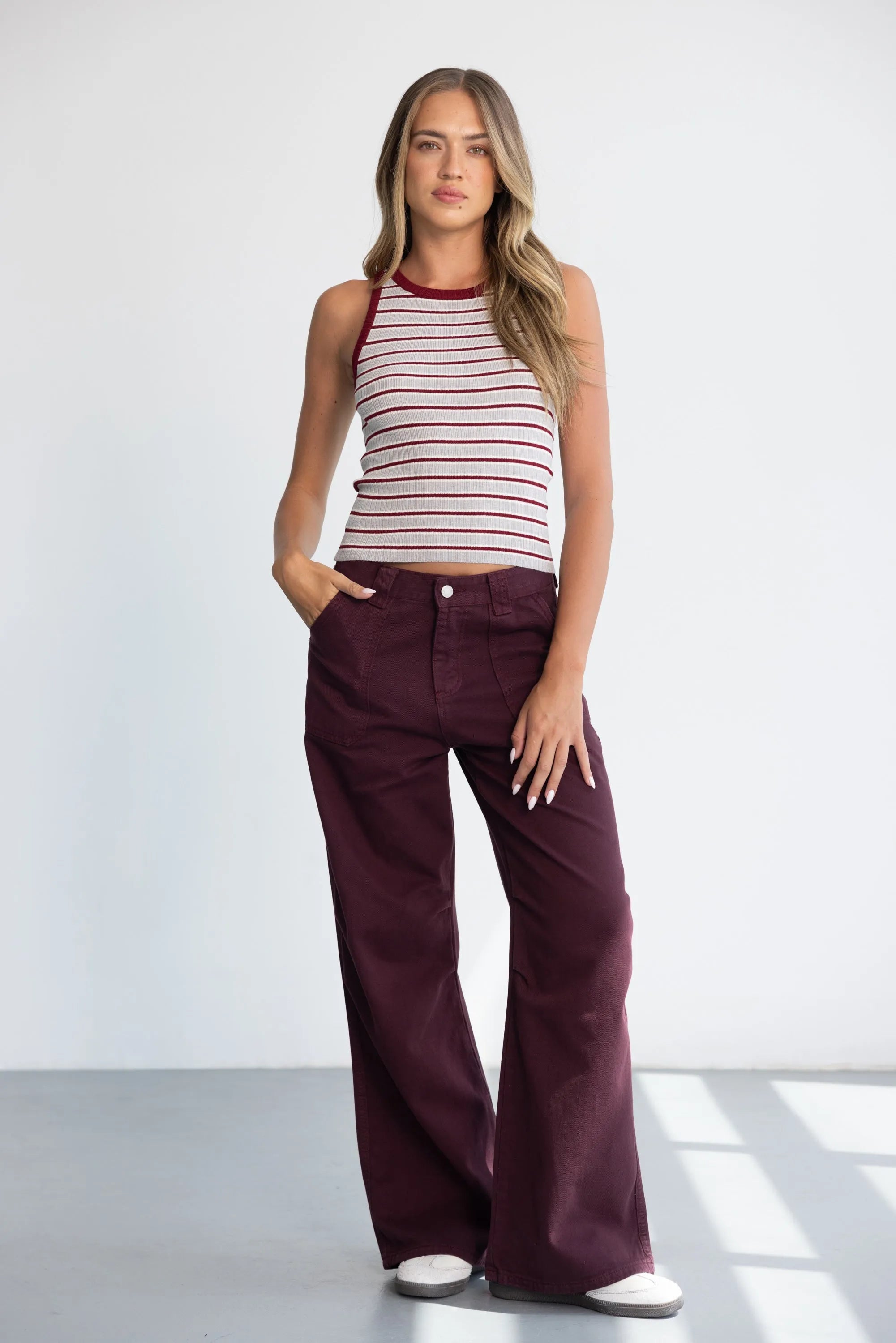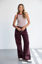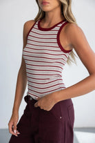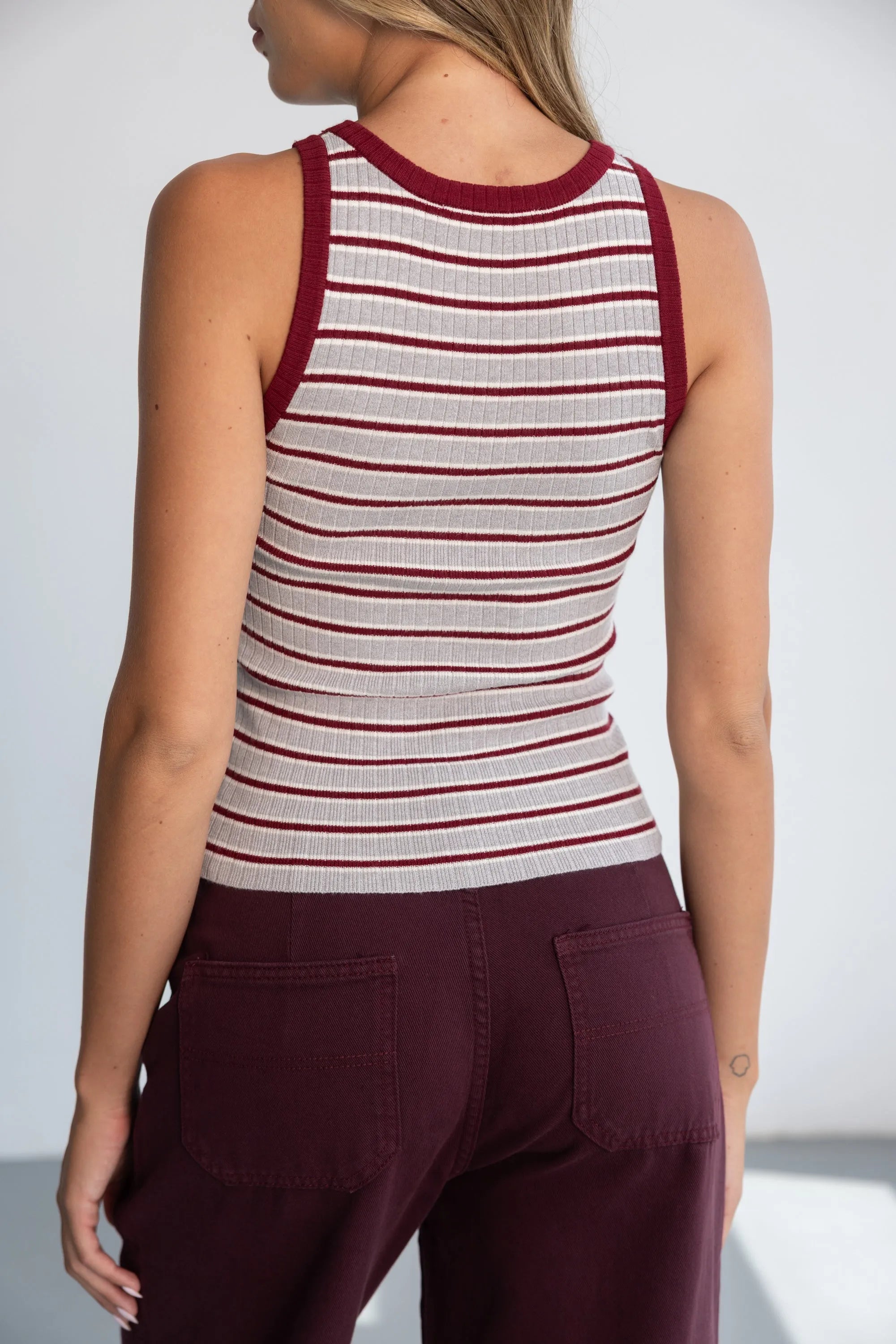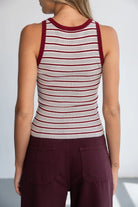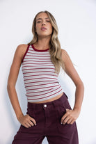 גופיית סריג עם מפתח צוואר עגול, בשילוב דוגמת פסים לרוחב הגופייה. גזרה צמודה ונוחה שמחמיאה לגוף.