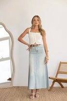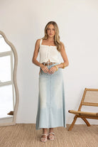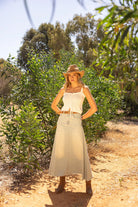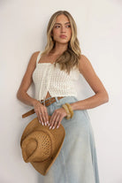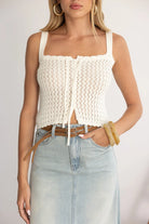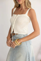 גופיית סריג בצבע קרם, בשילוב כתפיות דקות, כפתורים ושרוכים. בד קרושה נעים ואיכותי למראה קיצי.