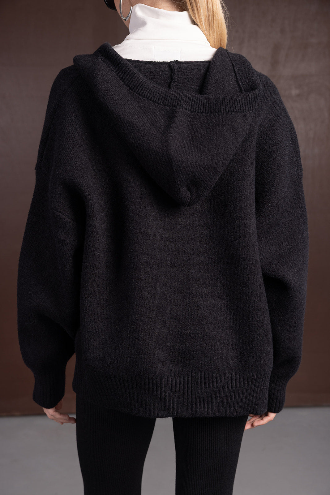 סריג מבד צמר מחמם ביותר לעונה ובגזרה משוחררת. בשילוב קופוצ'ון, זוג כיסים ורוכסן לסגירה.