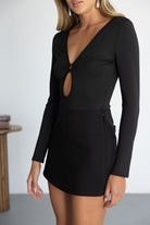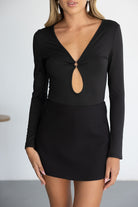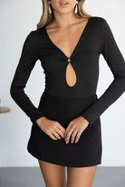בגד גוף מבד מחטב לנוחות מקסימאלית, בשילוב שרוולים ארוכים ומחשוף וי עמוק.