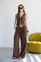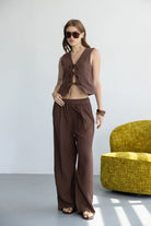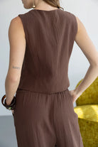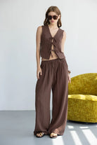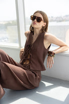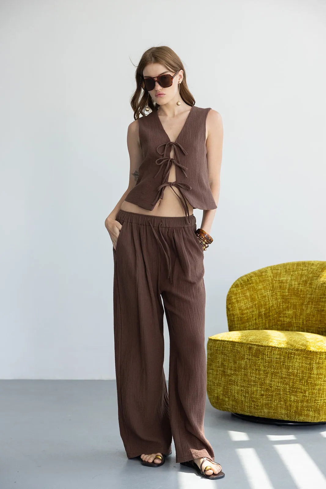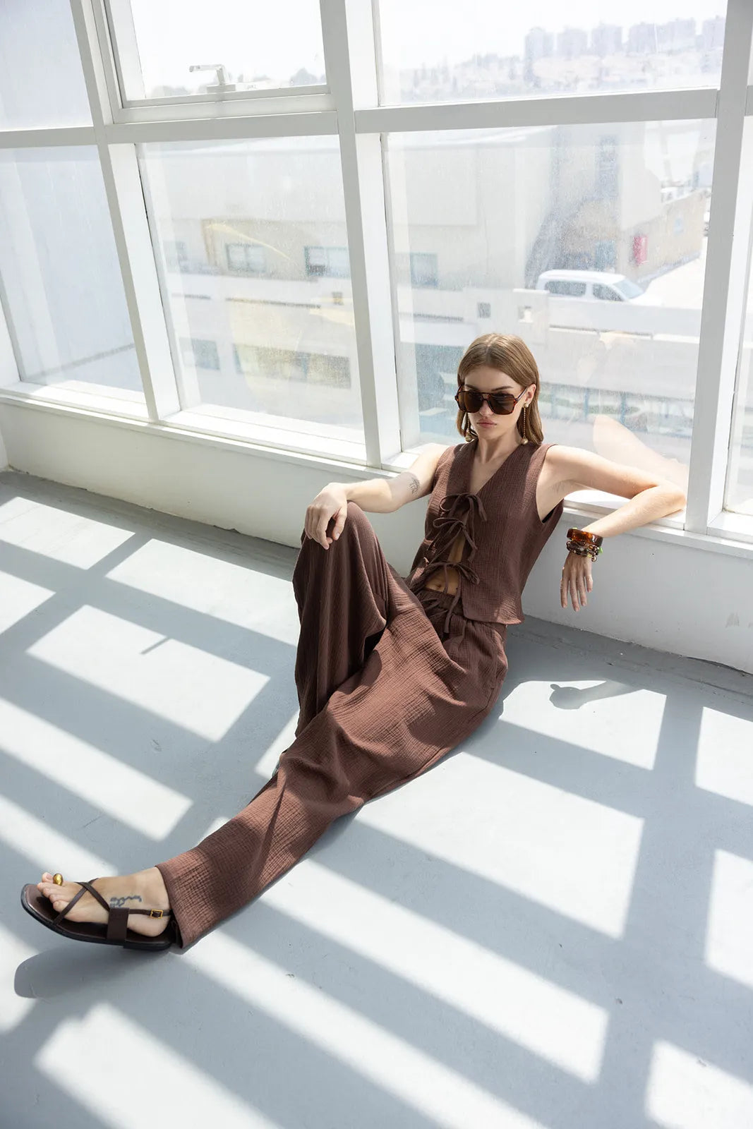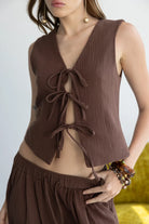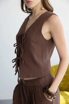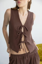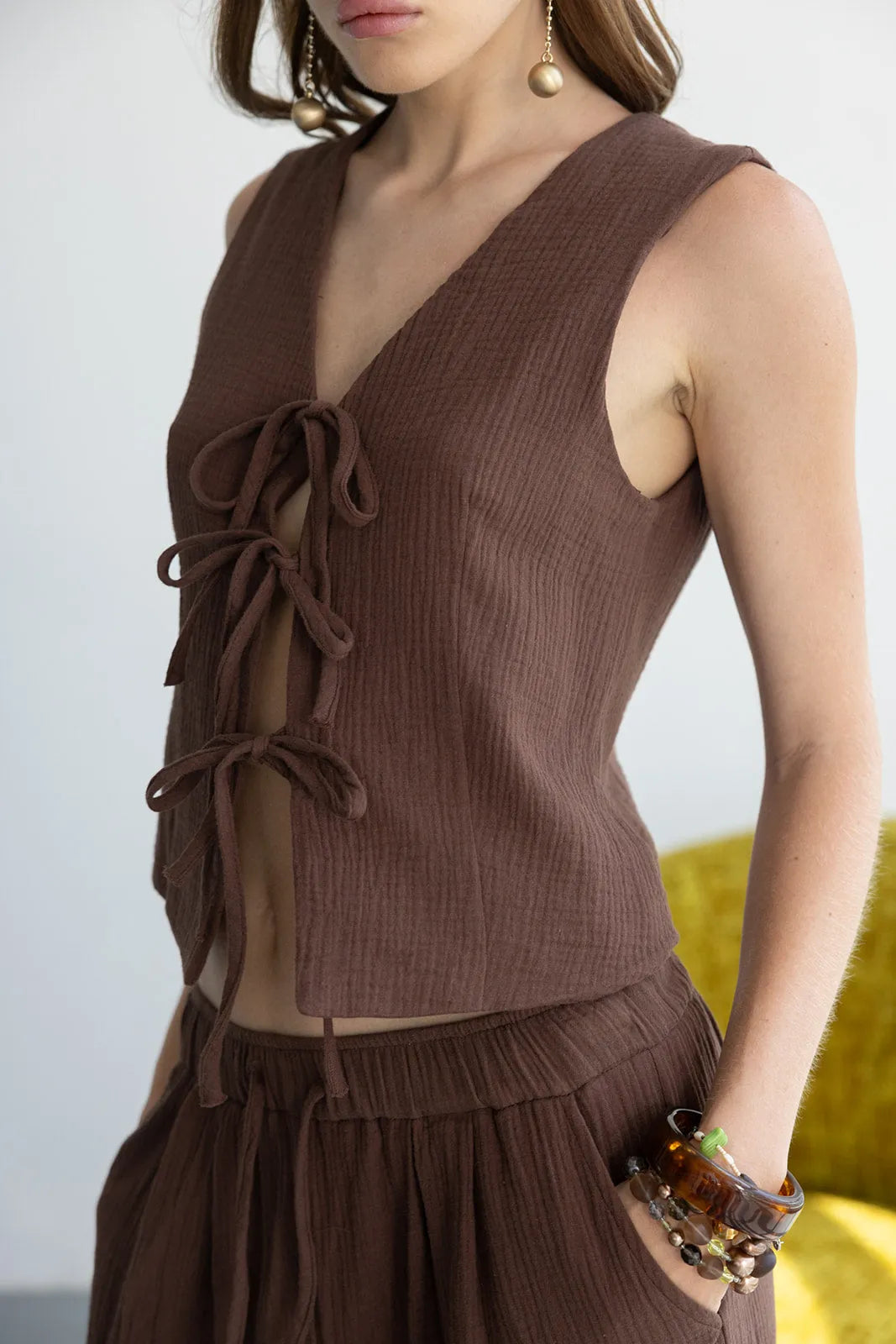 ווסט בגזרת קרופ מבד טטרה נעים ביותר לקיץ, בשילוב קשירה ומחשוף וי מחמיא.