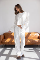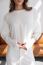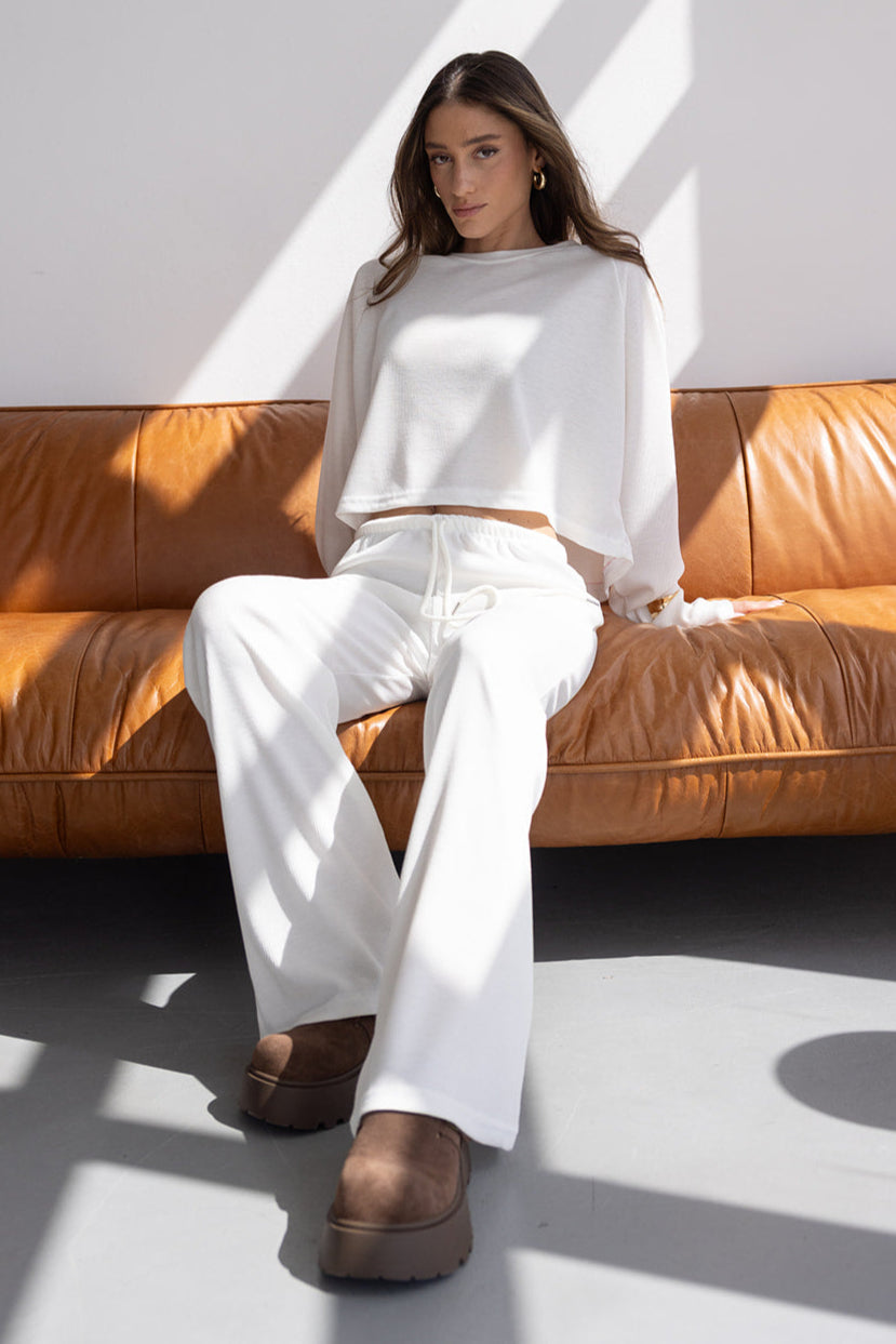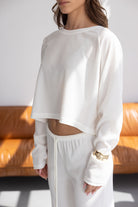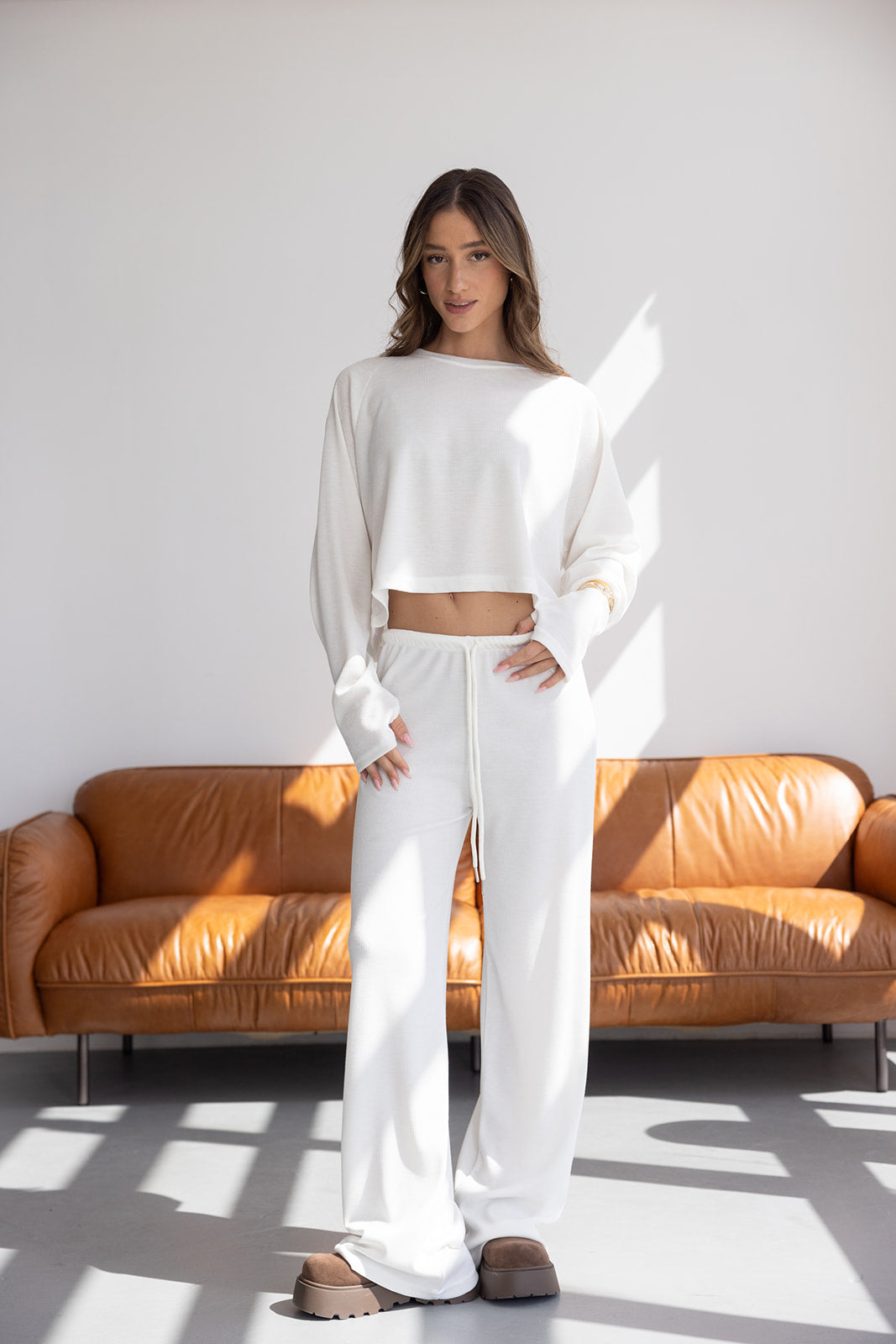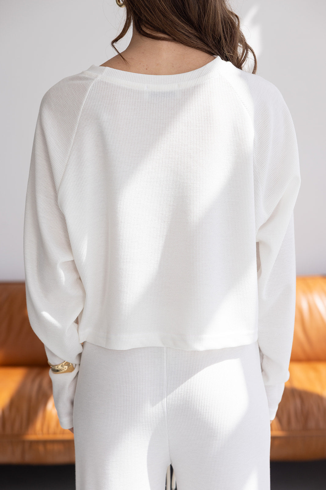 חולצה ארוכה בגזרת קרופ, נוחה ביותר מבד וופל נעים למגע, בגזרה ישרה ומשוחררת. לחולצה .שרוולים ארוכים המתאימים לעונה, צווארון עגול קלאסי וחור בשרוולים לכפפה