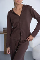 חולצת קרדיגן מבד נעים ואיכותי ביותר. בשילוב שרוולים ארוכים, כפתורים לאורך החולצה, מפתח צוואר וי וקפוצ'ון.