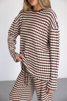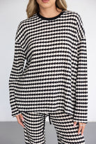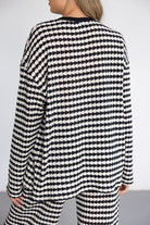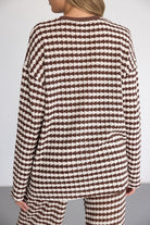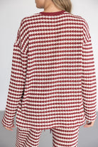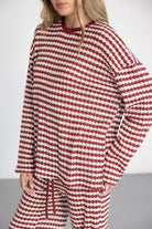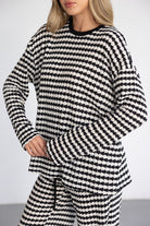 חולצת סריג דקה ונעימה, בגזרה מעט רחבה ומחמיאה. בשילוב צווארון עגול קלאסי ודוגמת פסים לרוחב החולצה.