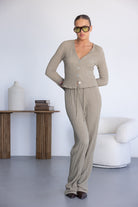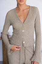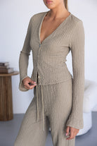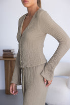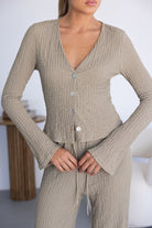 חולצה בגזרה מעט צמודה ומחמיאה ביותר, מבד מכווץ טרנדי. לחולצה שרוולים ארוכים ומתרחבים מעט, מפתח צוואר וי וכפתורים לאורך החולצה.