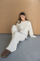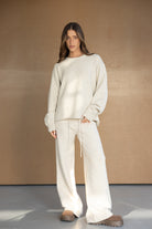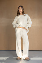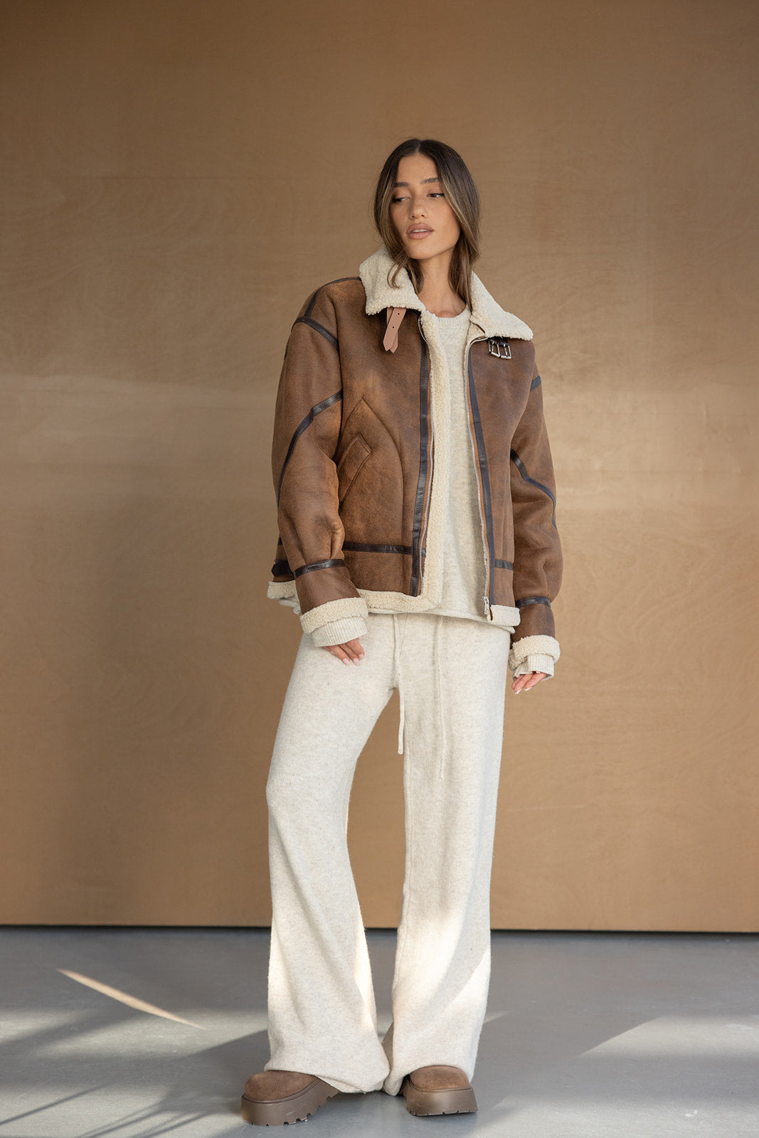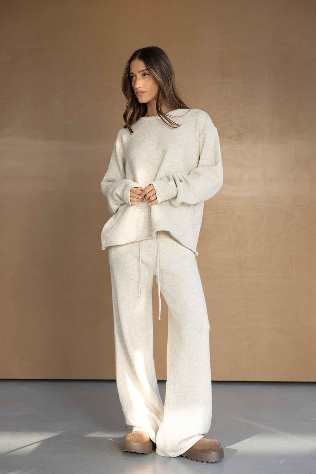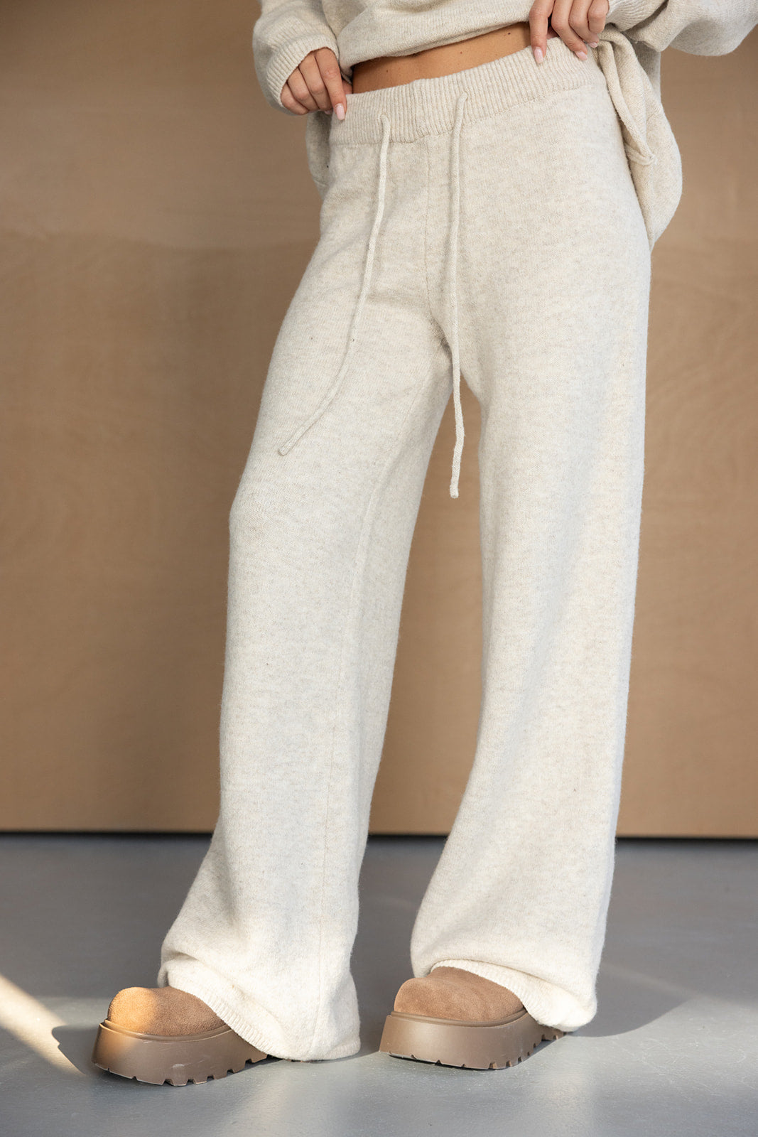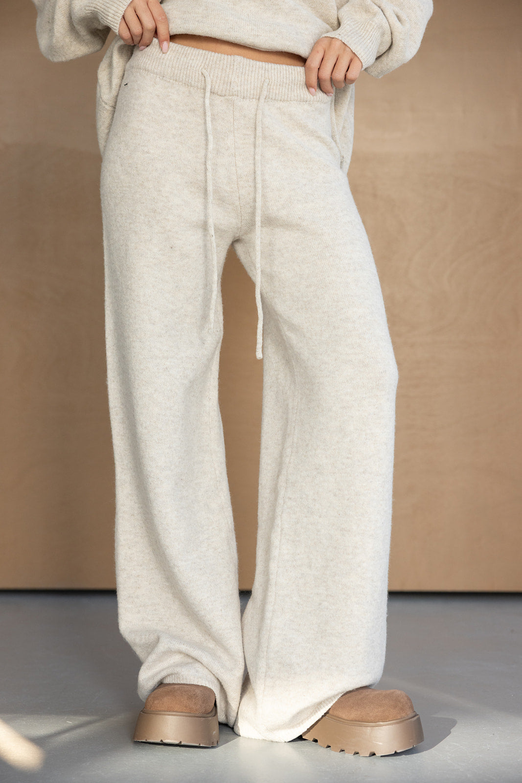 מכנס מבד סריג מחמם המתאים לעונה, בגזרה משוחררת ומחמיאה. בשילוב גומי במותן וקשירה.