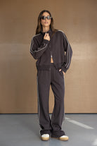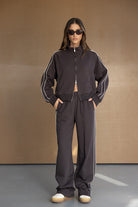 מכנסי פוטר מבד נעים ביותר ואיכותי, במראה ספורטיבי ובגזרה מעט משוחררת. בשילוב זוג כיסים בחלק קדמי, זוג פסים דקים בצידי המכנס, גומי במותן וקשירה .