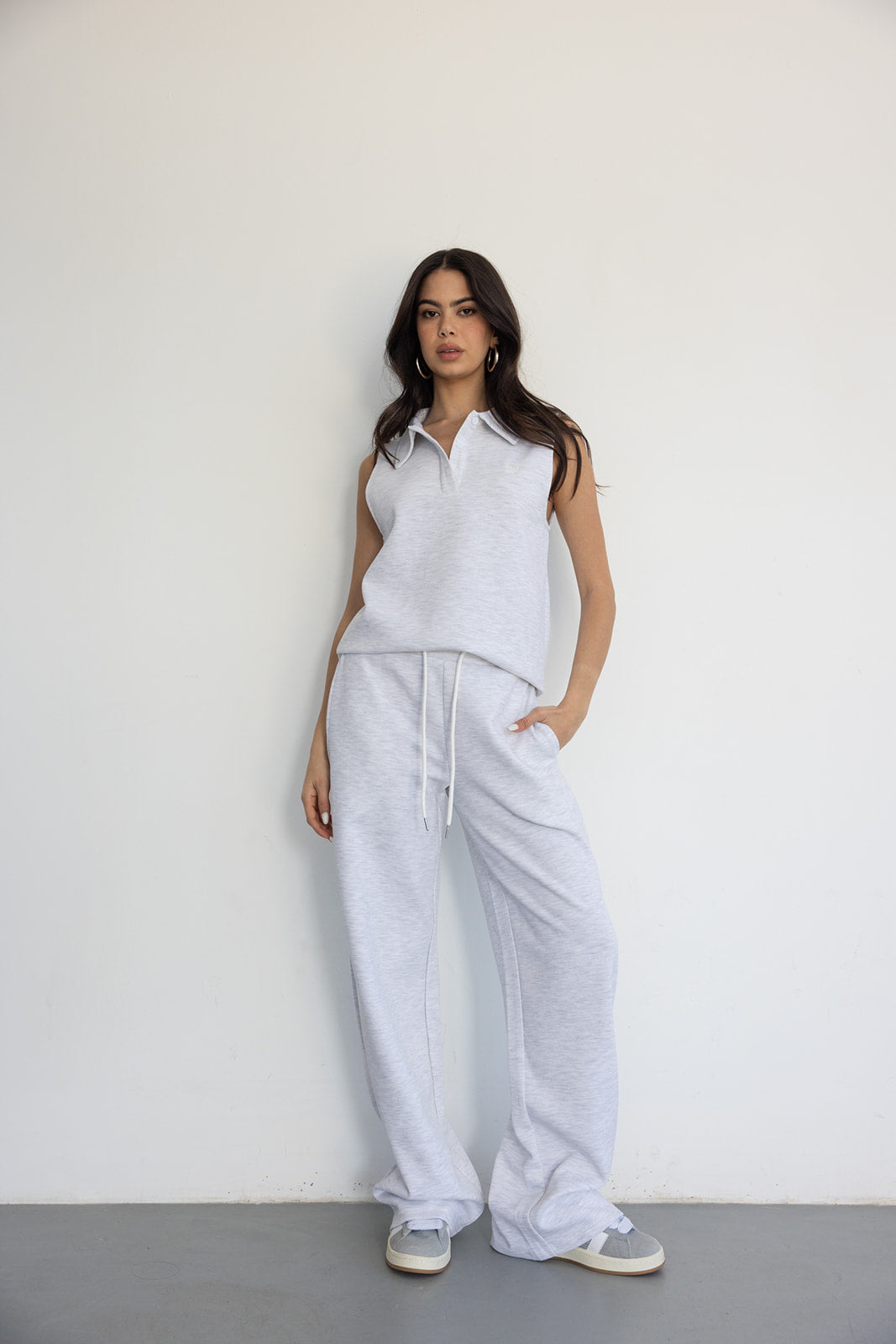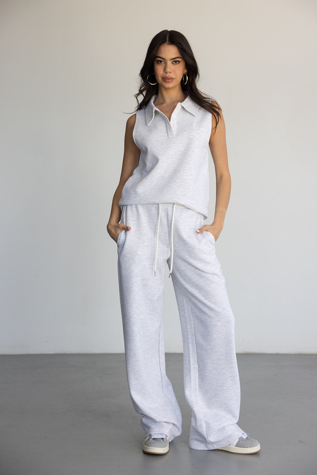 מכנסיים בגזרה רחבה עם מותן גומי ושרוך קשירה להתאמה מושלמת. כוללים כיסים צדדיים ונפילה רכה ונוחה שמעניקה מראה קליל.