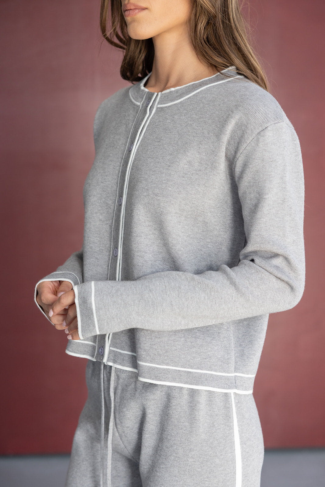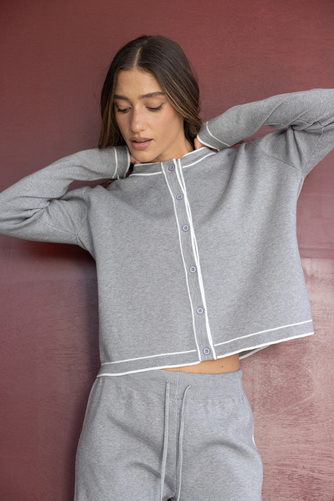 קרדיגן סריג רך ונעים במראה נקי ומעודן, בגזרה משוחררת עם קווי תפר דקורטיביים המוסיפים טאץ' מודרני. הבד נופל בצורה טבעית על הגוף ומעניק מראה נינוח