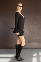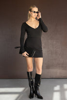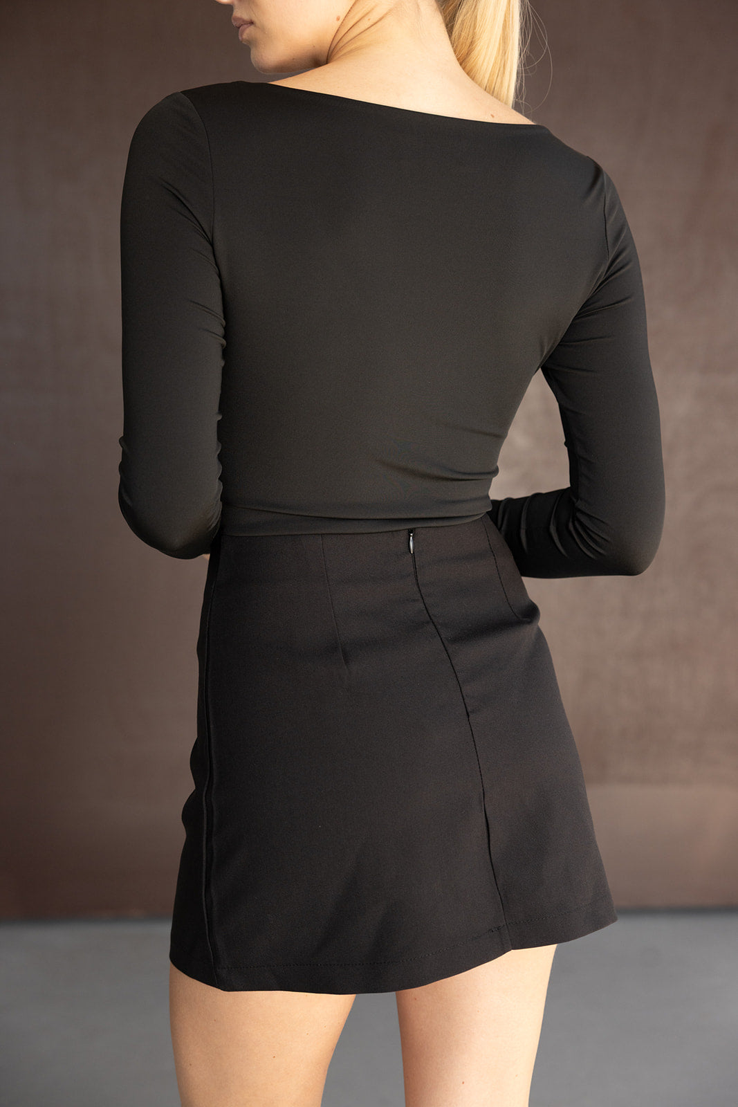 בגד גוף אלגנטי בגזרה מחמיאה, עם מפתח וי ושרוולים ארוכים. עשוי בד רך ונעים למגע, נצמד לגוף ויוצר מראה נקי ומוקפד.