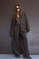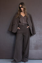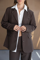 ג'קט מחויט קלאסי בגזרה מדויקת, בשילוב כפתורים ושלושה כיסי דמה.