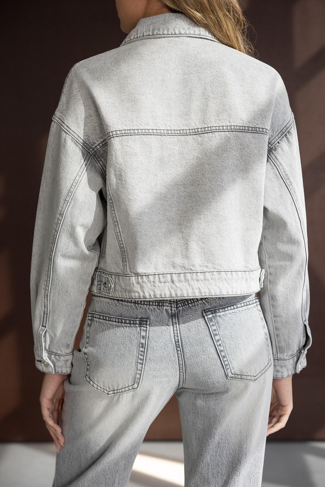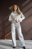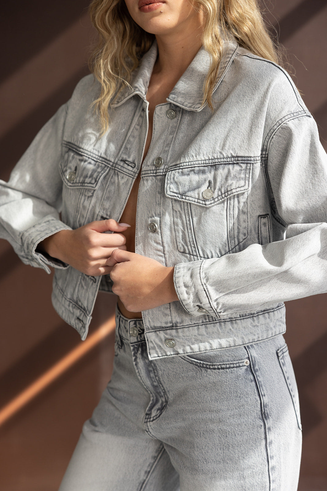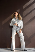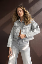 ג'קט ג'ינס במראה קלאסי ובגזרה מעט קרופ, בשילוב שני כיסים, כפתורים וצווארון קלאסי.