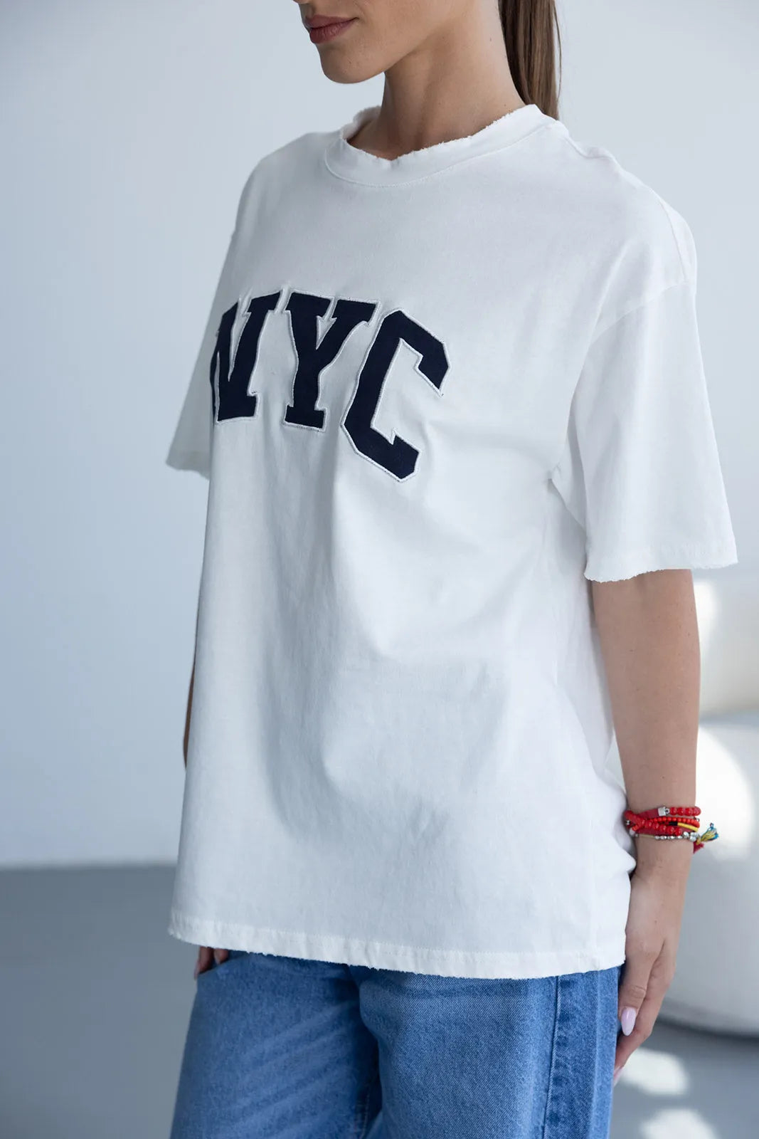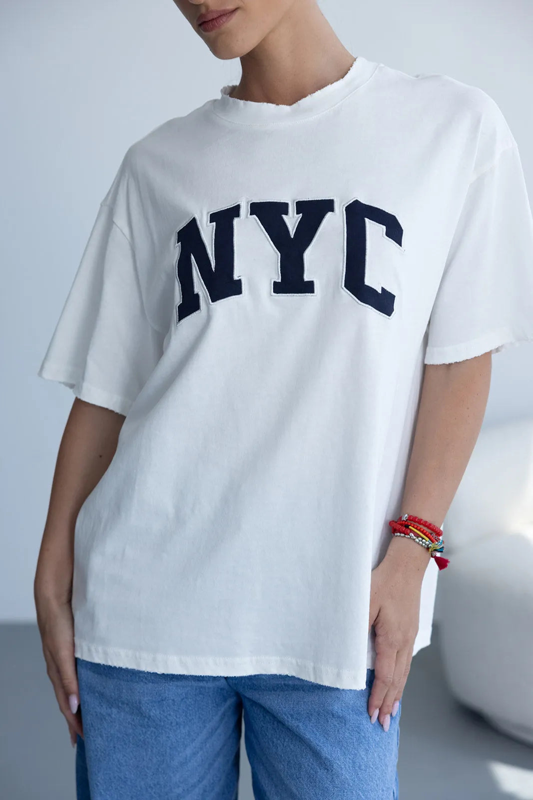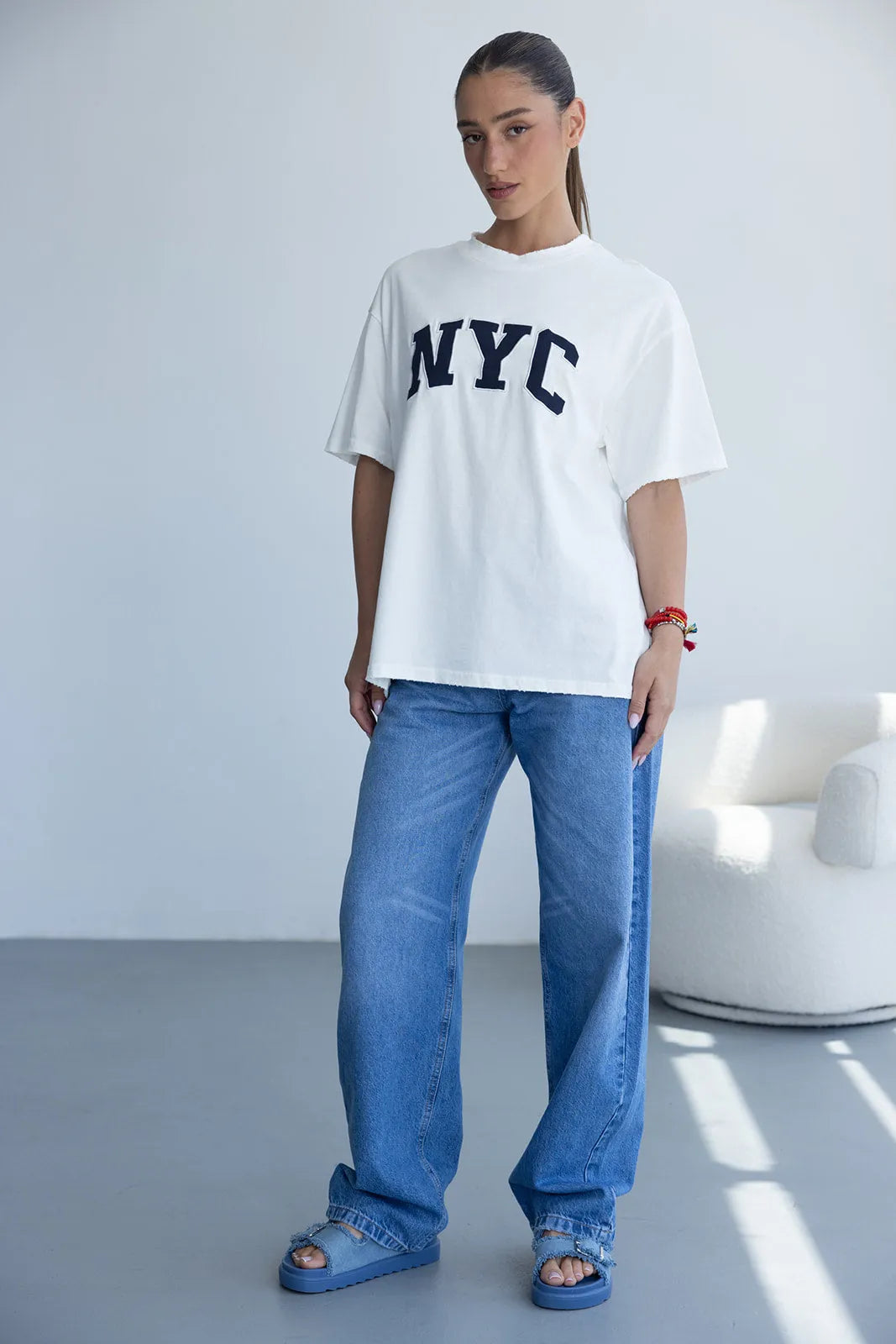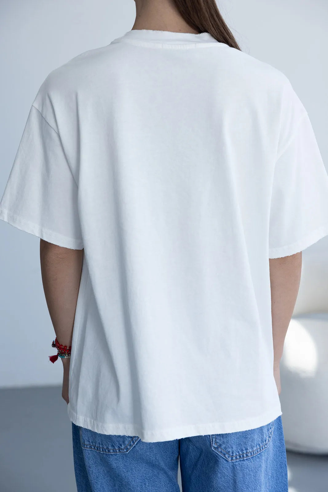 חולצת אוברסייז בצבע קרם בשילוב הדפס טרנדי, בד נעים ואיכותי המתאים לעונה.