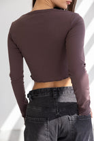 חולצת בייסיק בגזרת קרופ מחמיאה ביותר, בשילוב שרוול ארוך המתאים לעונה וסיומת מלמלה עדינה טרנדית.