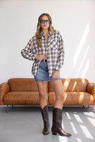 חולצה מכופתרת קלאסית וטרנדית כאחד, בגזרה משוחררת ומחמיאה לגוף. בשילוב הדפס משובץ ובד נעים ואיכותי.