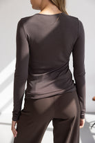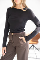 חולצת בייסיק מבד נעים ואיכותי ביותר, מעט שקפקף אך אלגנטי. החולצה בגזרה צמודה ומחמיאה, בשילוב שרוולים ארוכים המתאימים לעונה וצווארון עגול קלאסי.