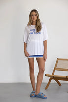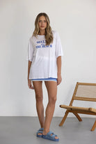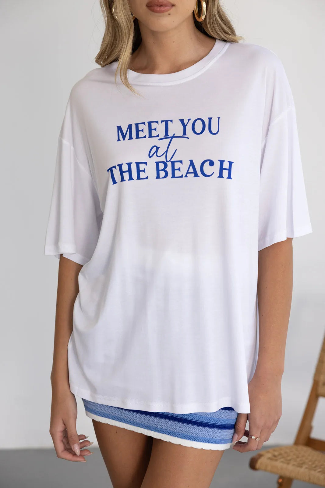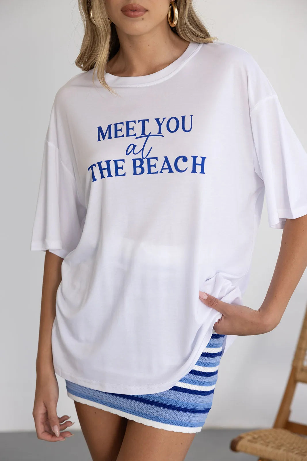 חולצת אוברסייז לבנה בשילוב הדפס טרנדי, בד נעים ואיכותי המתאים לעונה.
