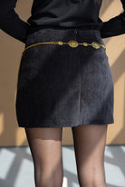 חצאית מיני קלאסית מבד נעים ואיכותי ביותר. בשילוב רוכסן לסגירה מאחורה.
