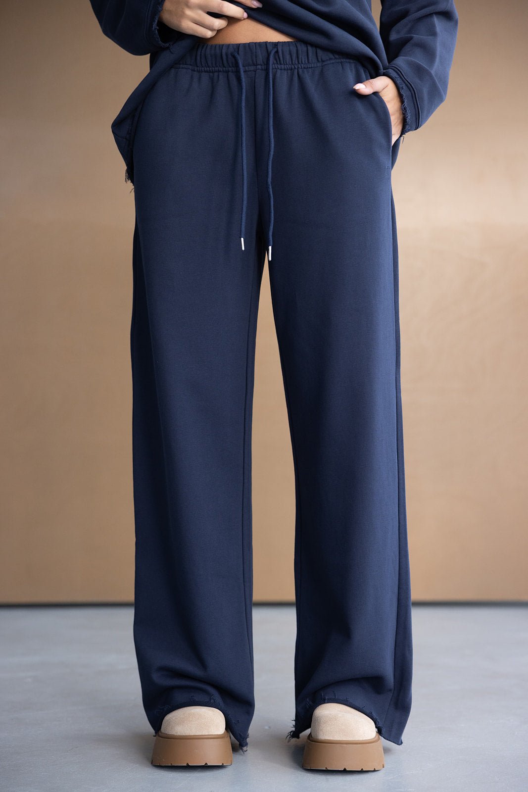 מכנס טרנינג מבד כותנה נעים ביותר ובגזרה משוחררת מחמיאה, מגיע בצבעים מדוייקים לעונה. בשילוב גומי במותן וקשירה.