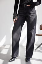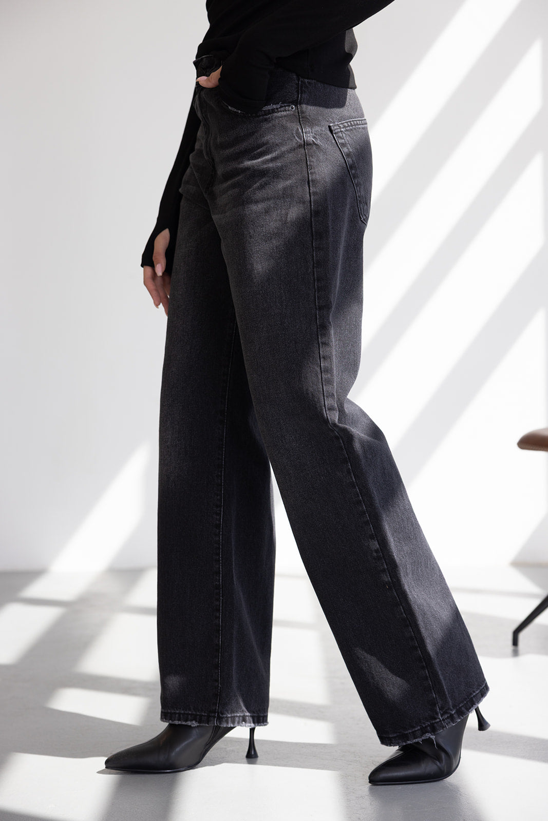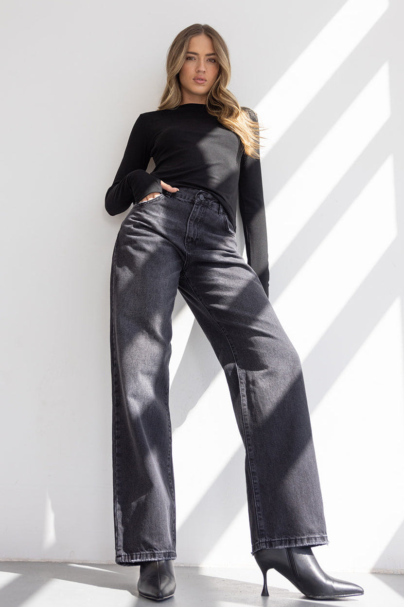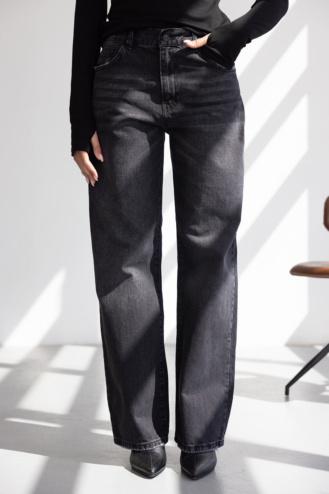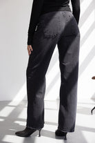 מכנס ג'ינס בגזרה ישרה קלאסית ומחמיאה, בשילוב שני כיסים קדמיים ושני כיסים אחוריים.