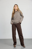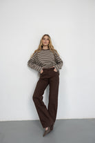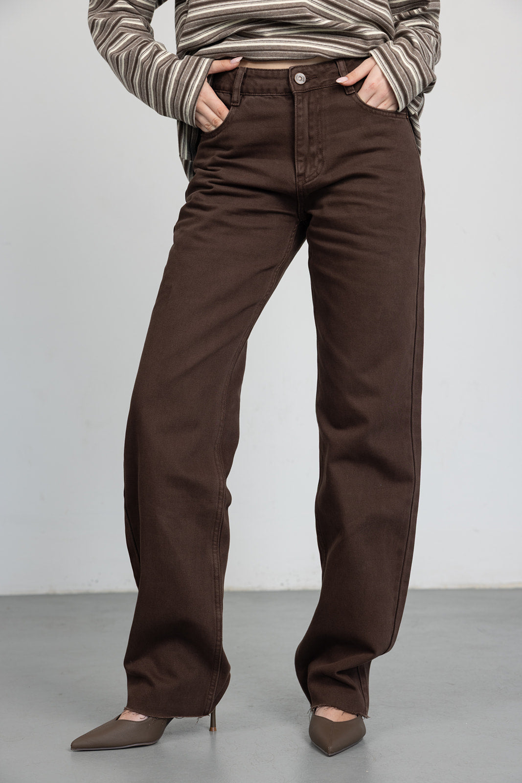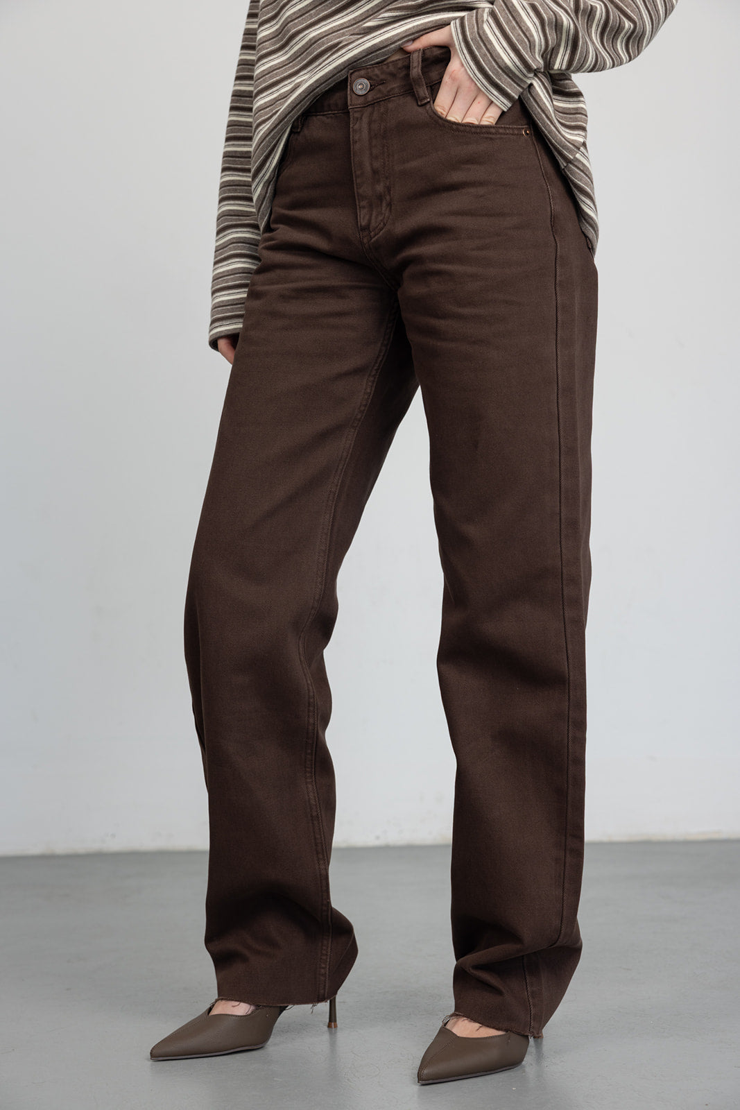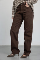 מכנס בגזרה ישרה עם מותן גבוהה, סגירת רוכסן וכפתור. כלל כיסים קדמיים ואחוריים. בד דנים קלאסי ונעים למגע.