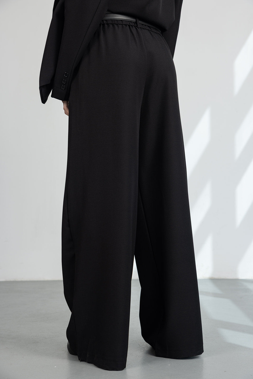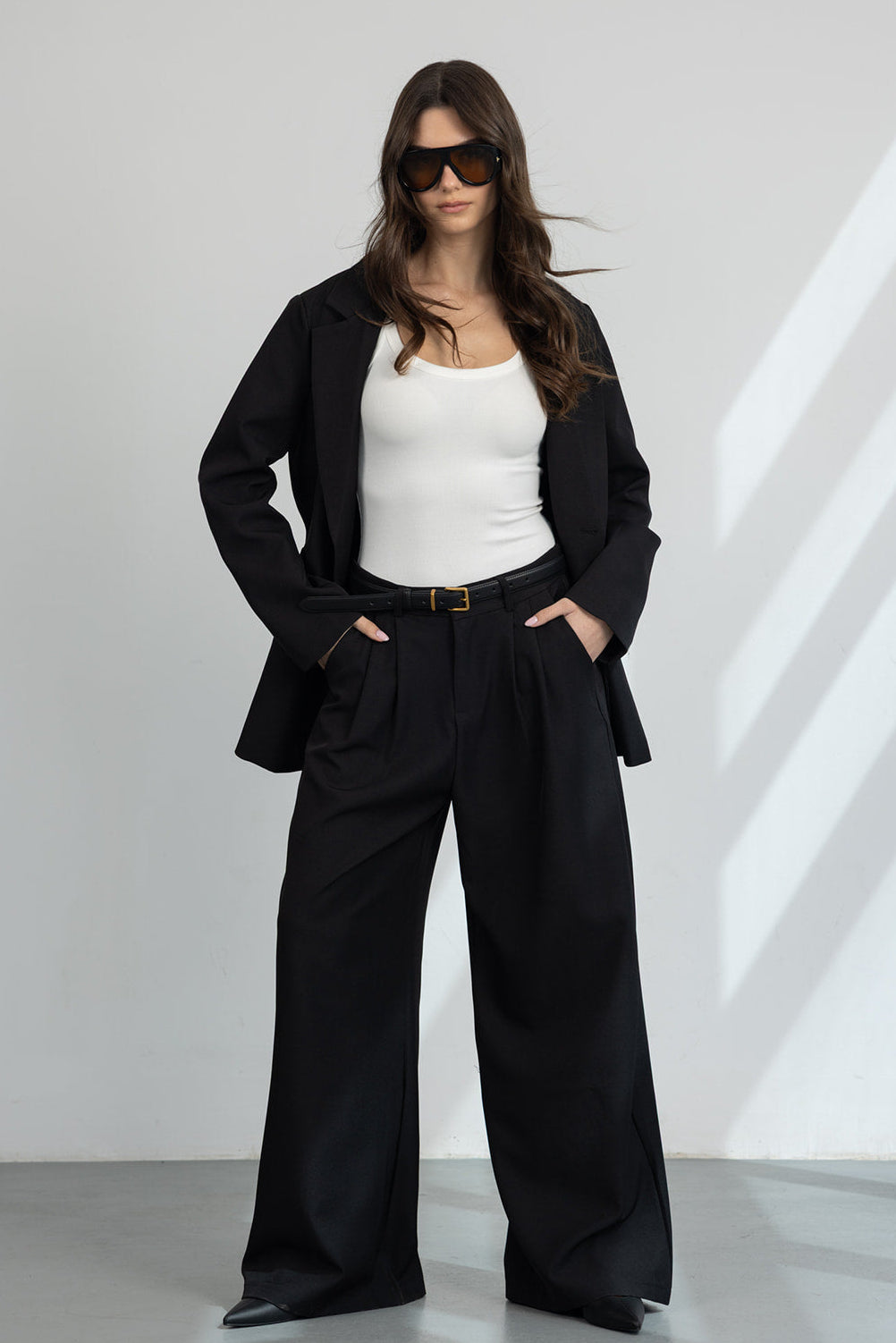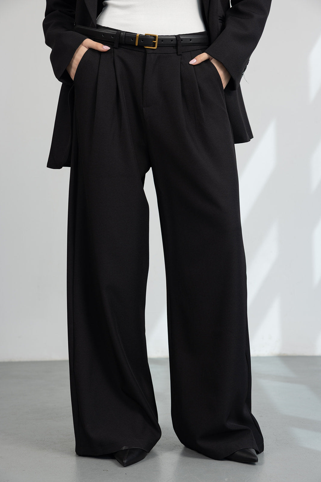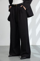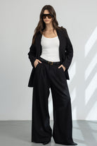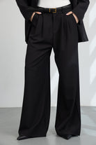 מכנס מחויט במראה קלאסי וגזרה משוחררת, עם כפתור ורוכסן ושני כיסים קדמיים.