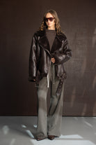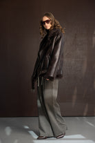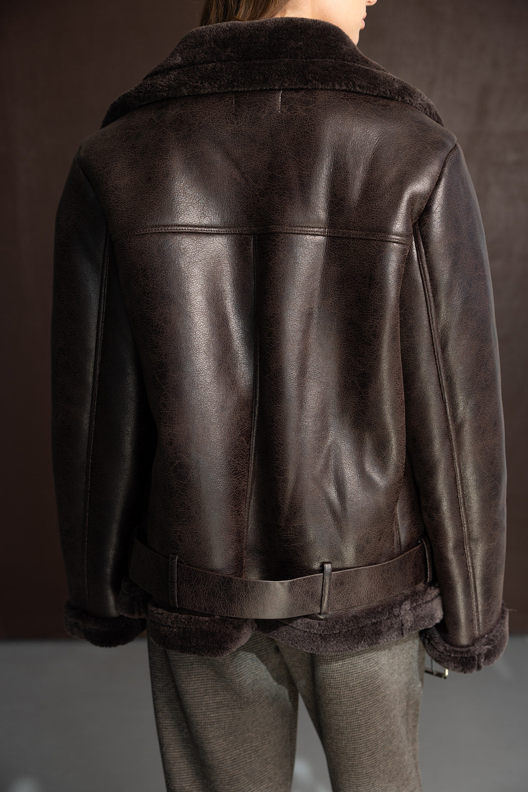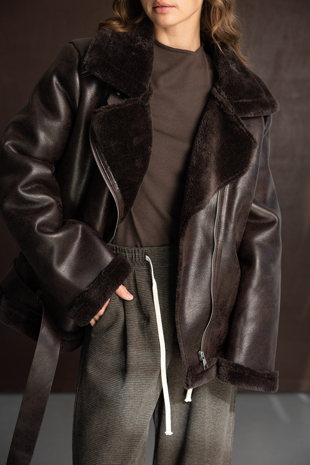 מעיל אוברסייז עם צווארון רחב ורוכסן אלכסוני. כולל כיסים קדמיים ורצועה בחלק התחתון. בד נעים ואיכותי ביותר