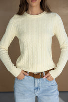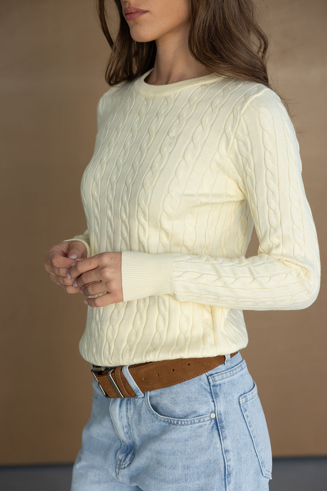 סריג מבד מחמם המתאים לעונה, בעל דוגמת צמות עדינה שמוסיפה טקסטורה ונגיעה אלגנטית.