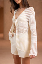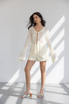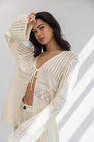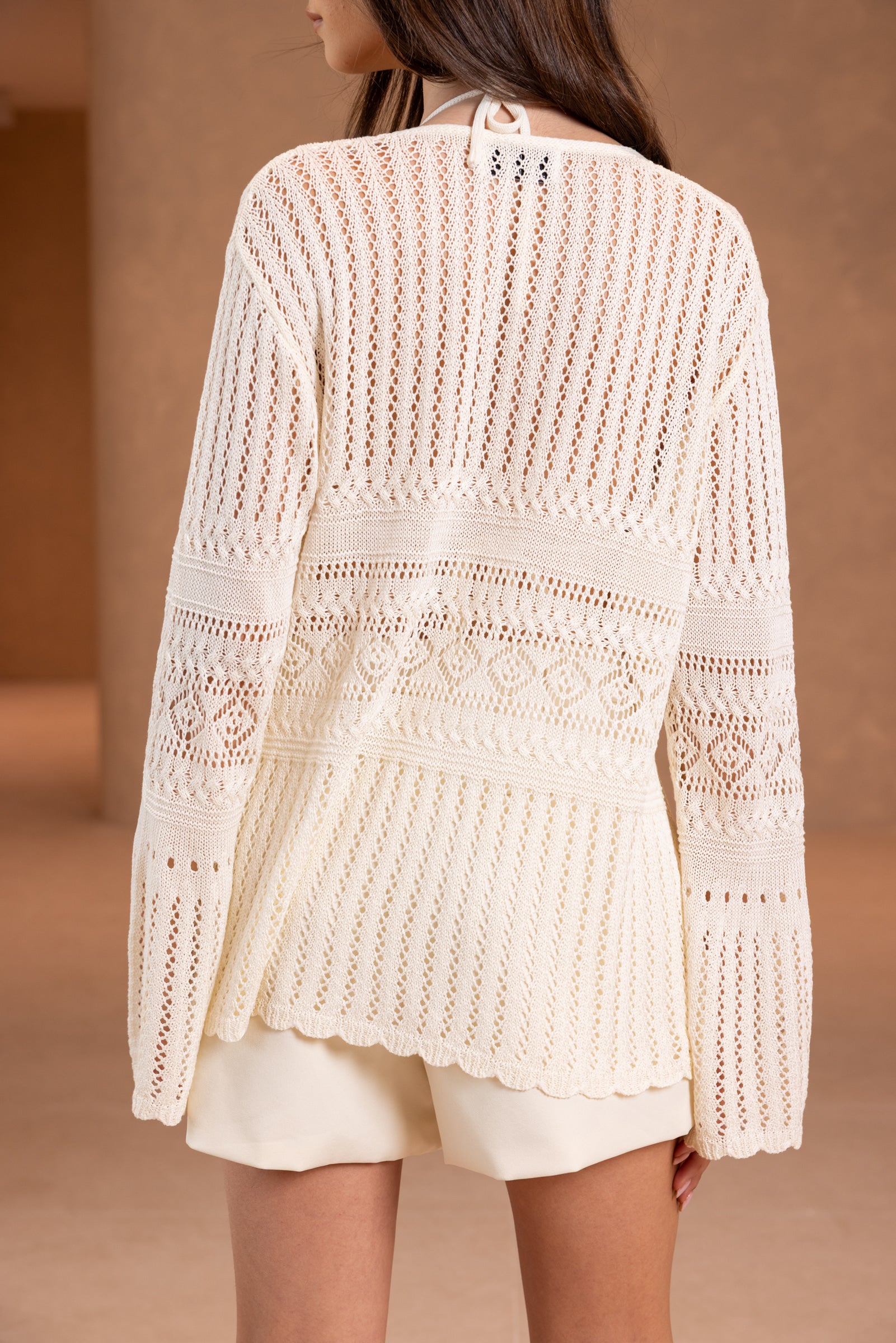 עליונית קרושה דקיקה במראה חגיגי, בשילוב שרוולים ארוכים וקשירה.