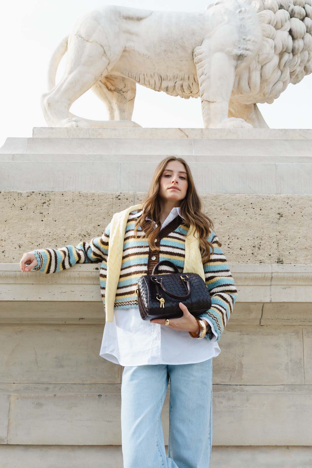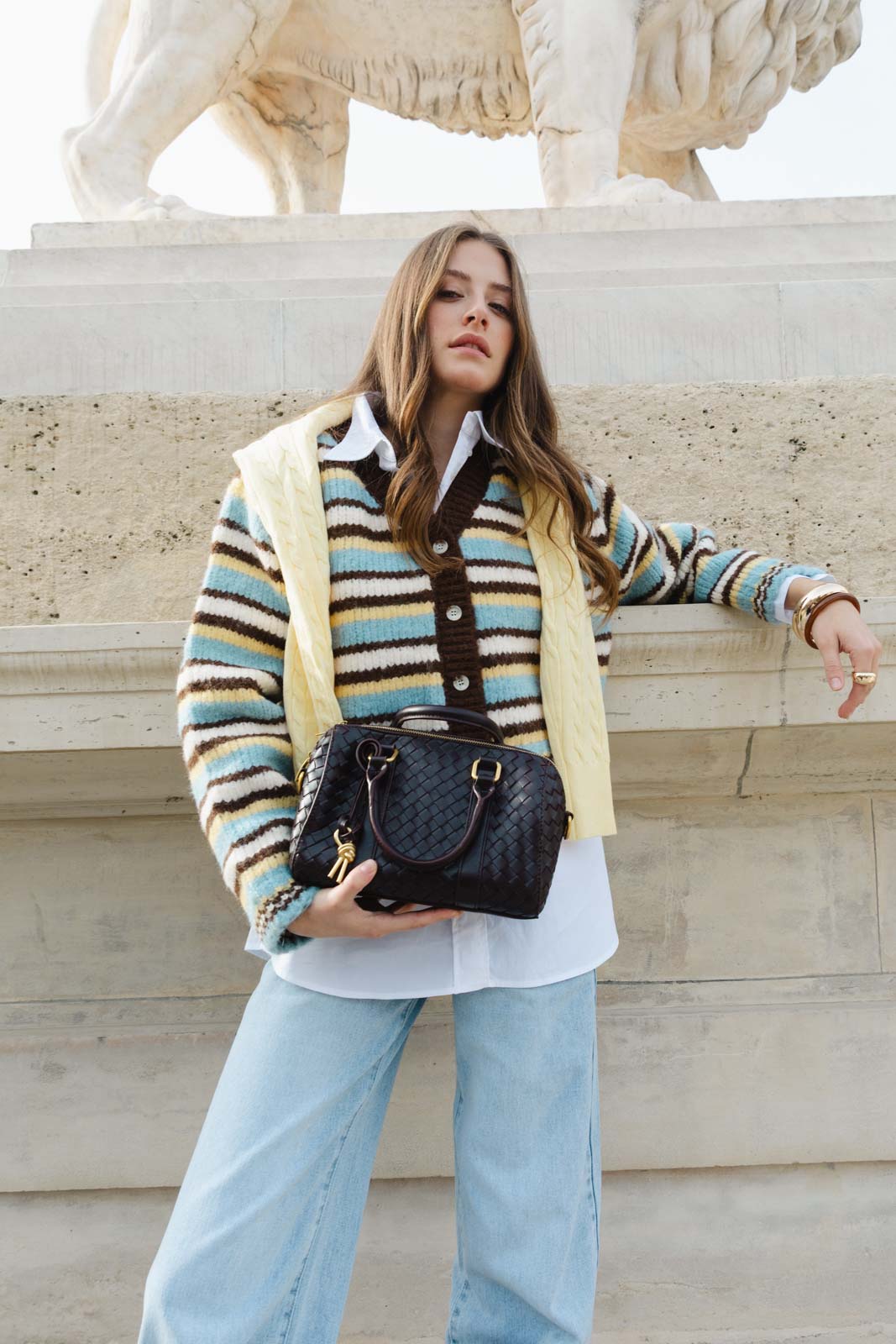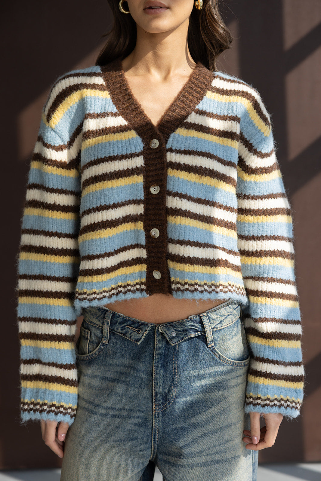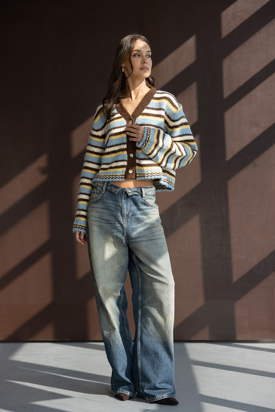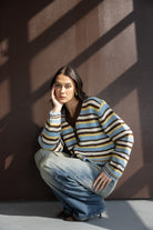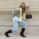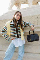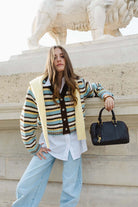 קרדיגן מבד נעים ומחמם, בגזרה מחמיאה ביותר ובמראה טרנדי. בשילוב הדפס פסים לרוחב הקרדיגן ומפתח צוואר וי.