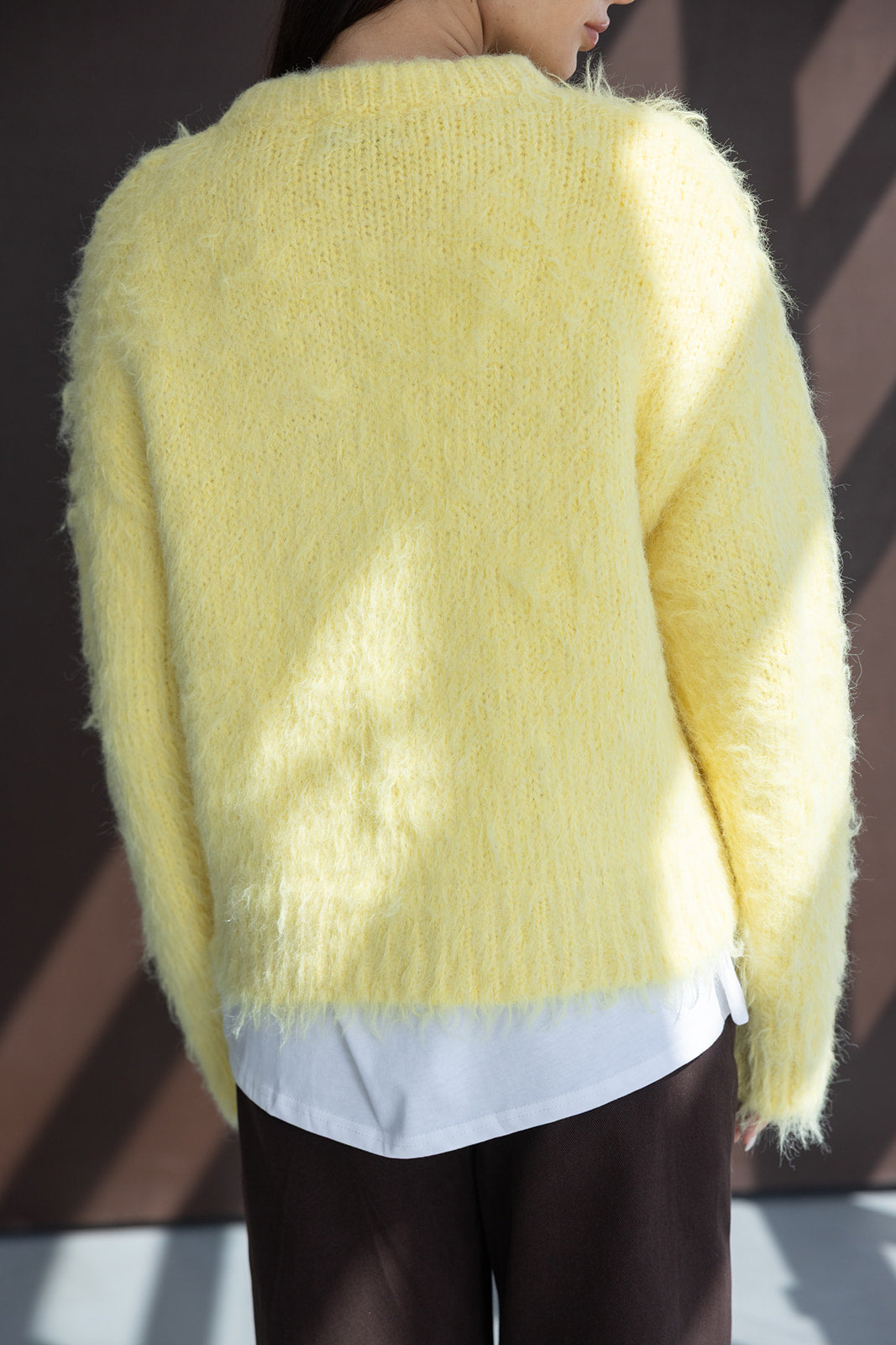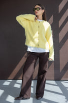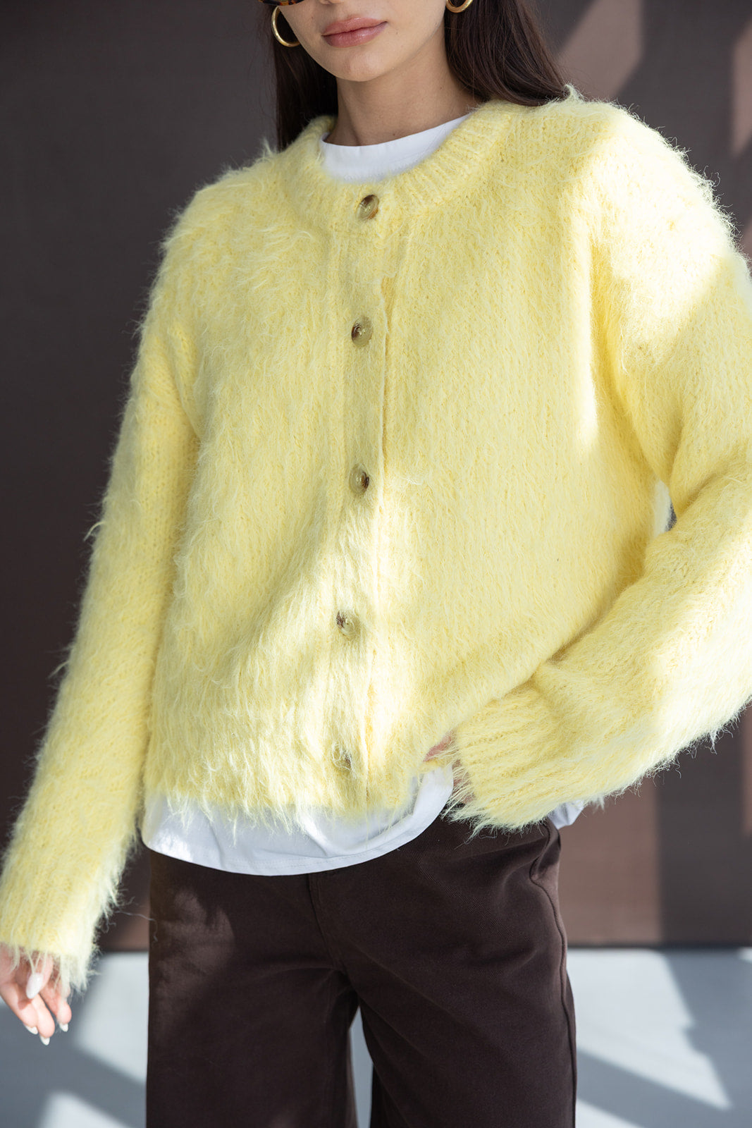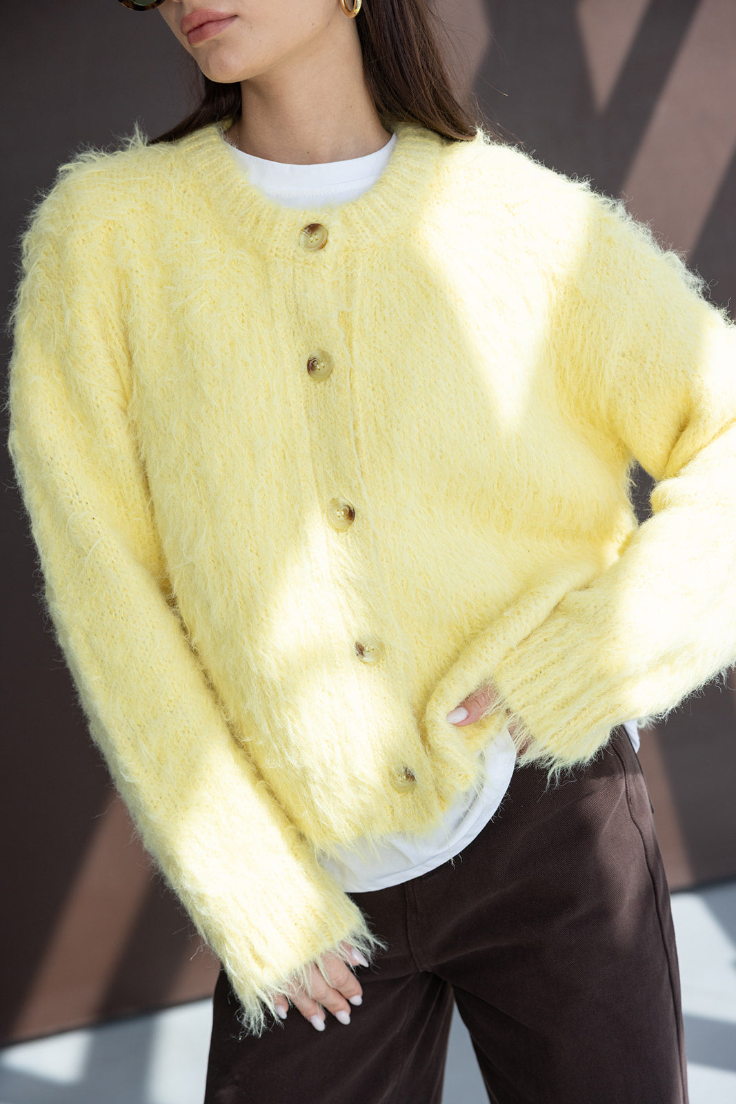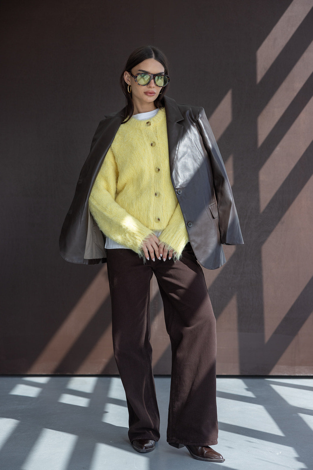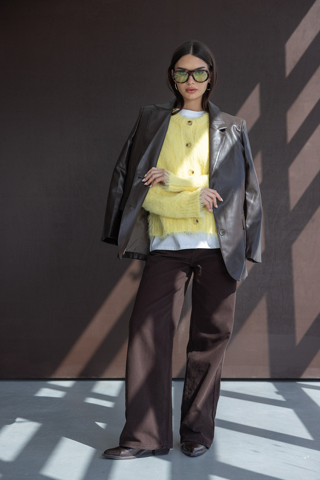 קרדיגן מבד נעים, מחמם ונוח ביותר לעונה. בשילוב כפתורים לאורך הקרדיגן וטקסטורה סרוגה .