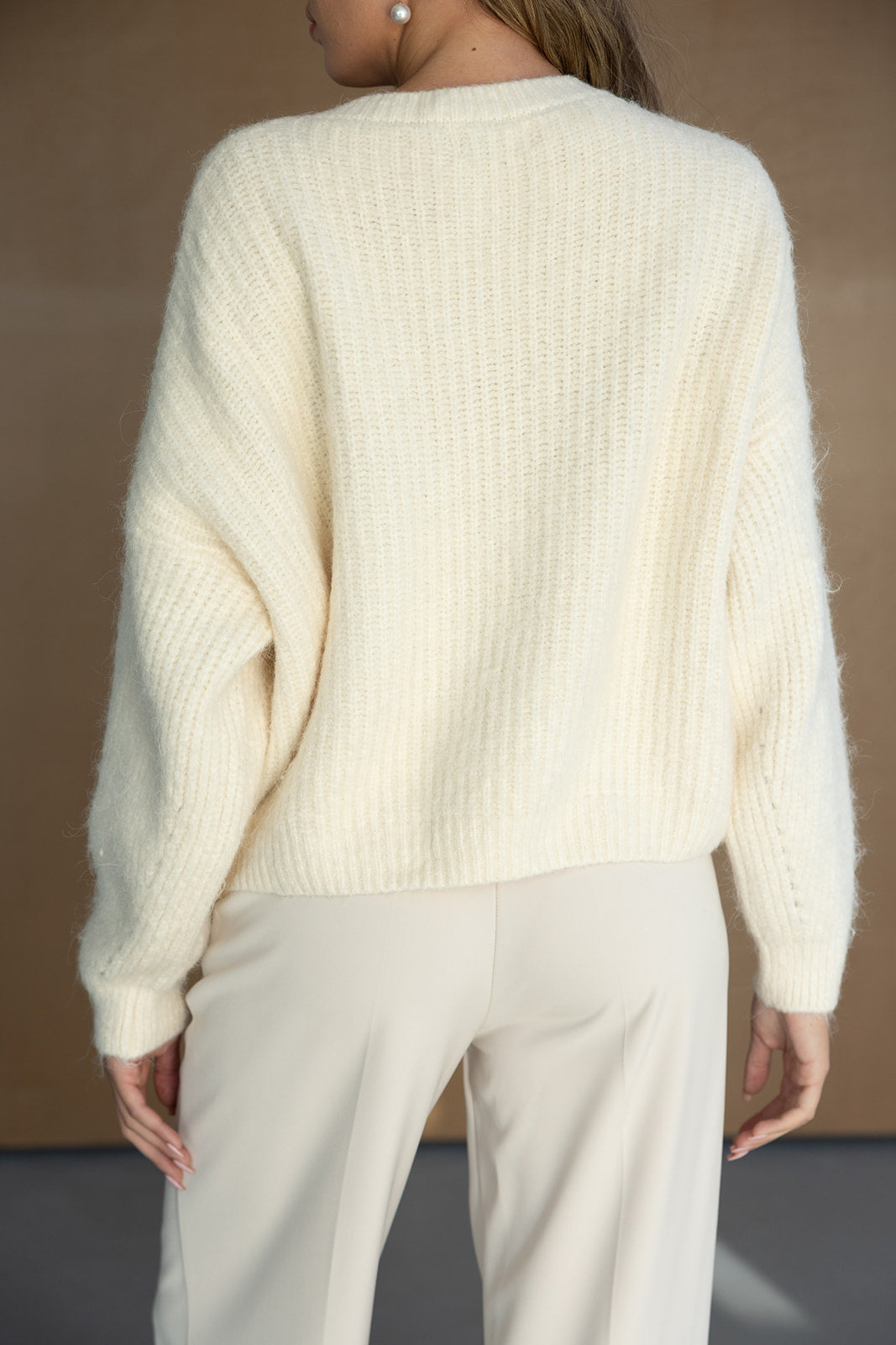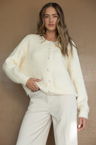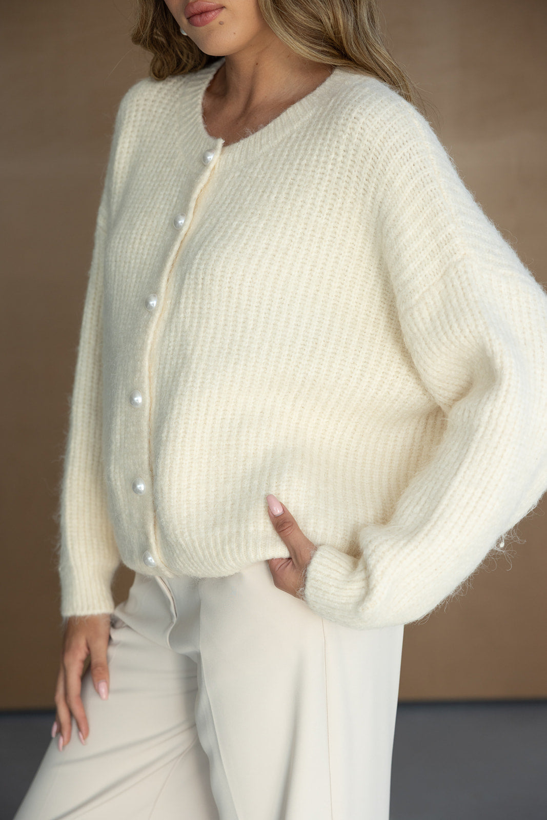 קרדיגן צמר קלאסי בגזרה נקייה, עשוי סריג רך ונעים למגע. עיצוב אלגנטי עם סגירת כפתורים קדמית.