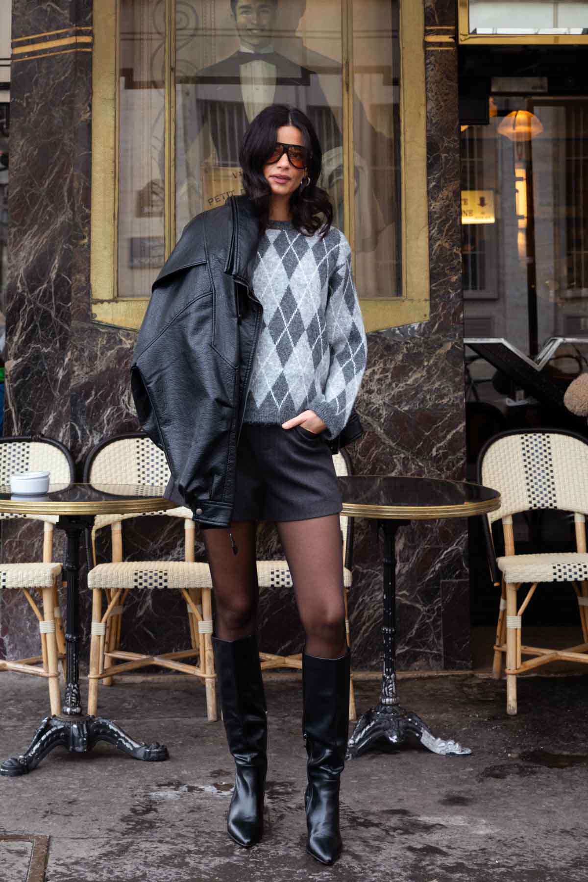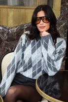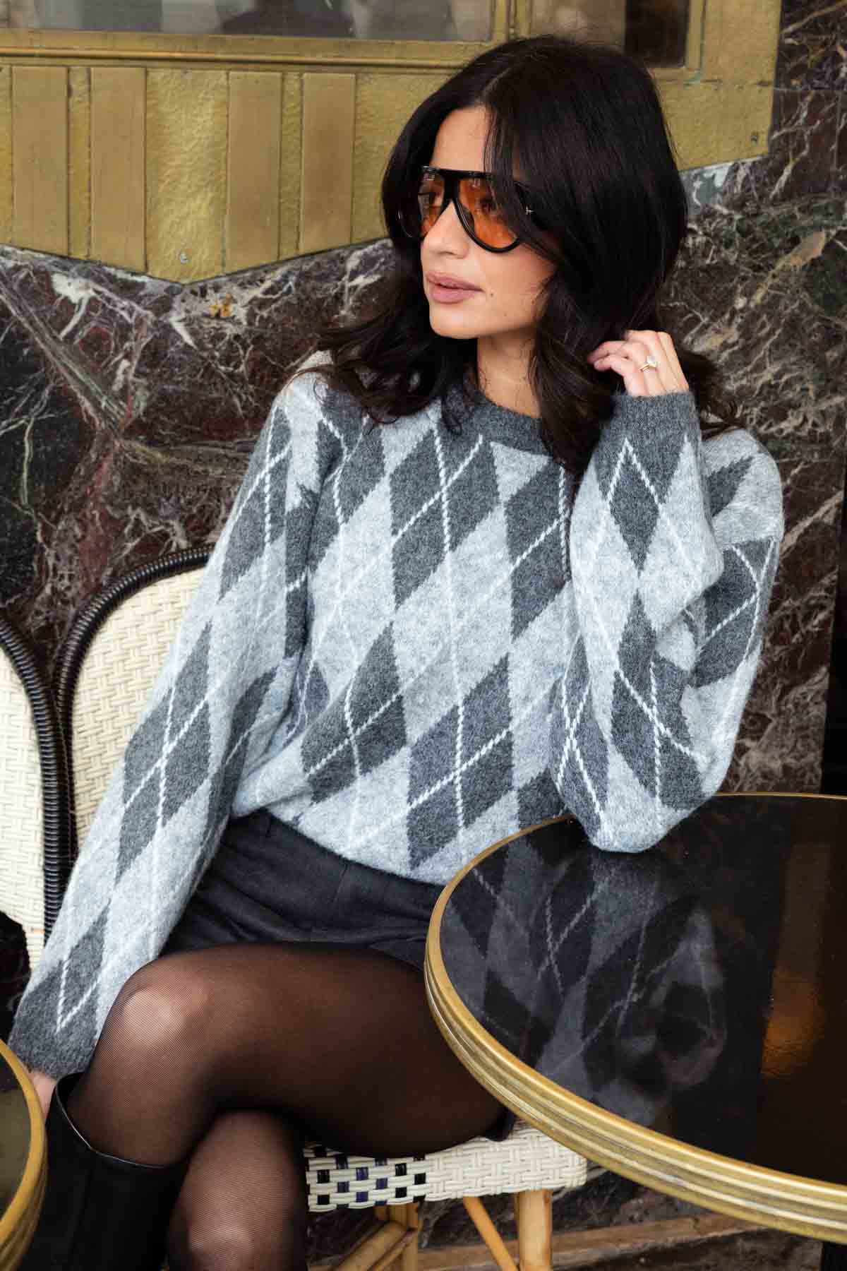 סריג בגזרה מחמיאה ביותר ומבד איכותי. בשילוב דוגמת מעוינים קלאסית במראה הטרנדי של העונה.