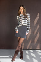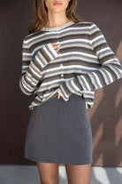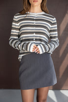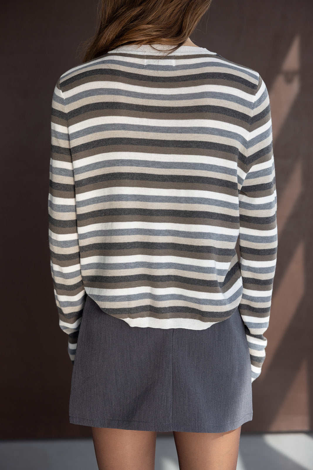קרדיגן בגזרה צמודה ומחמיאה, עשוי בד נעים ביותר ואיכותי. בשילוב כפתורים לאורך והדפס פסים לרוחב הקרדיגן.
