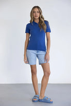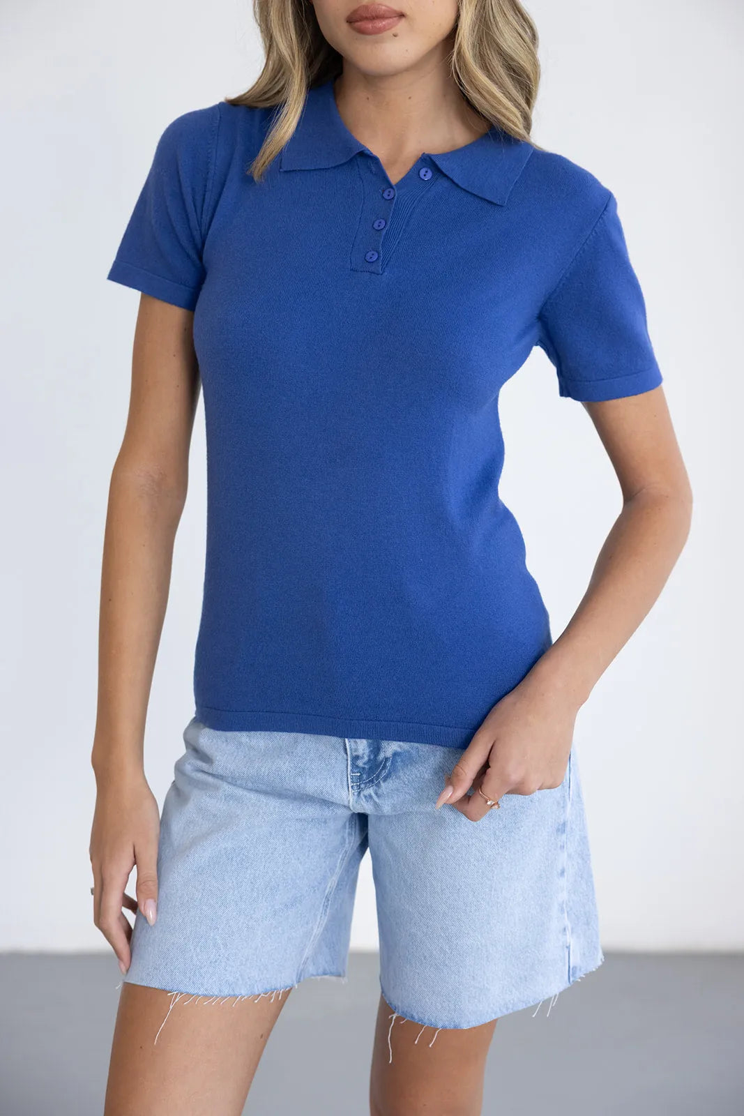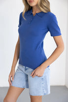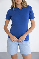 חולצת פולו בייסיק נקייה בצבע כחול רויאל, עם צווארון קלאסי, כפתורים ושרוולים קצרים. עשויה מבד נעים ונושם למראה יומיומי אלגנטי שמשתלב בכל לוק.